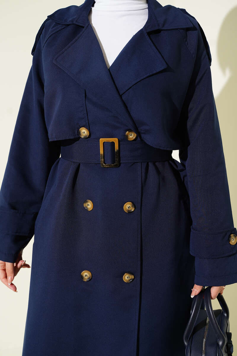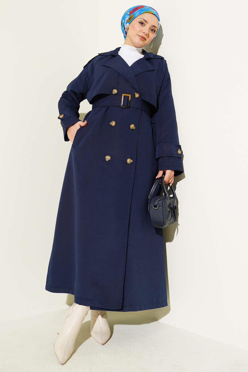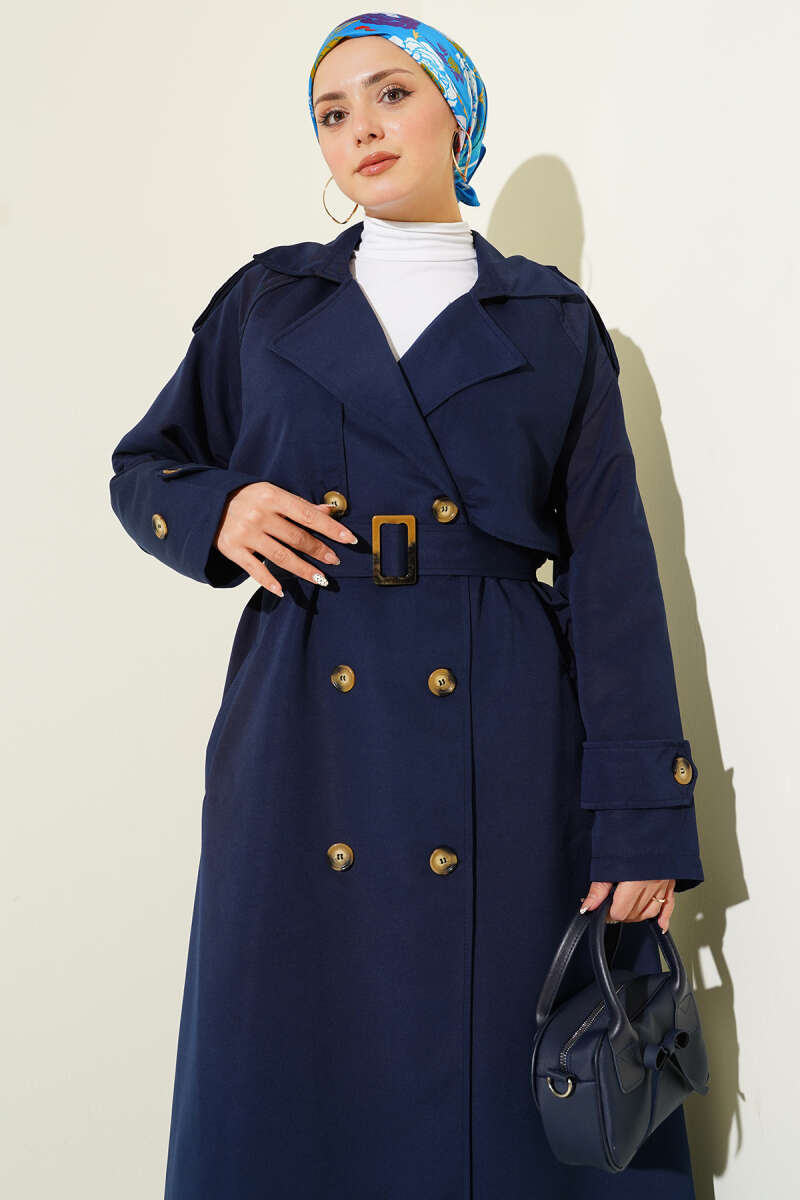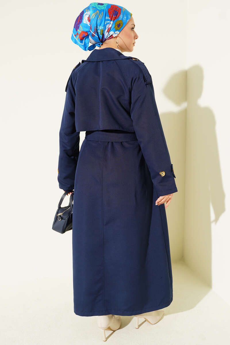 Kol Apoletli Kuşaklı Kot Trençkot Lacivert
