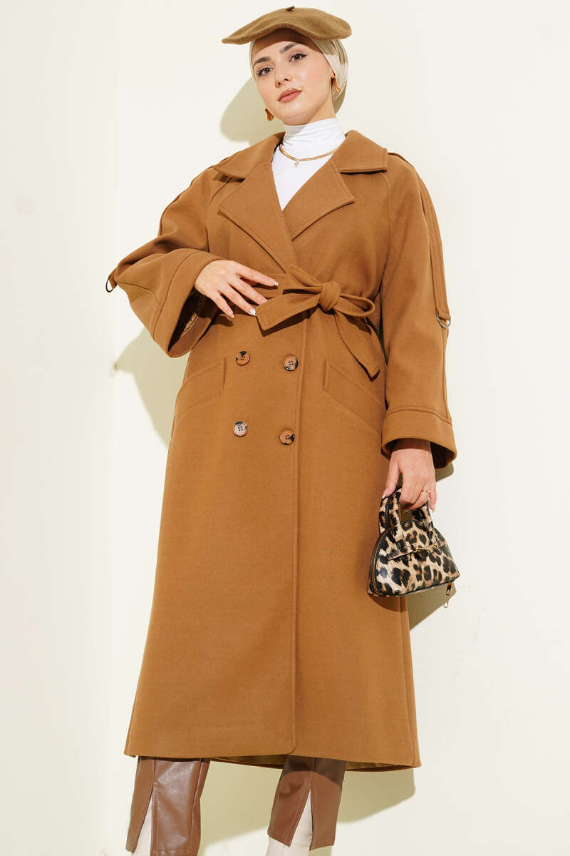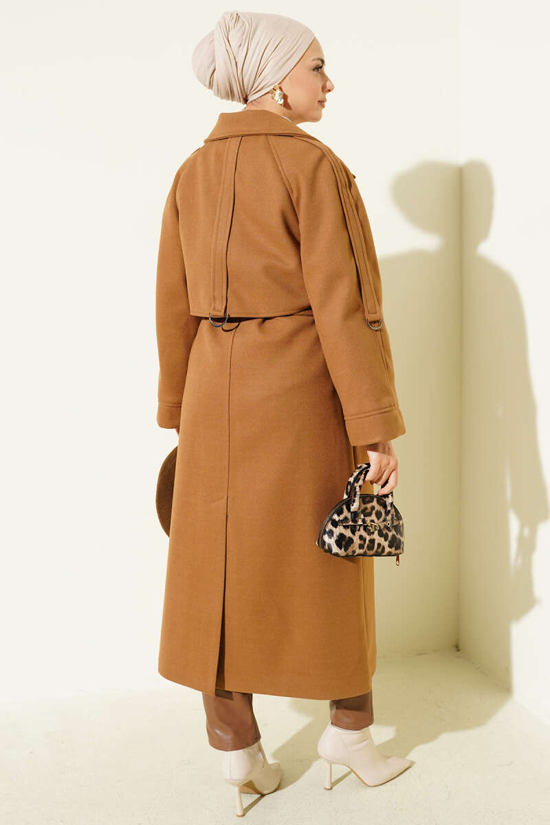 Bel Kuşaklı Astarlı Kaşe Kaban Siyah