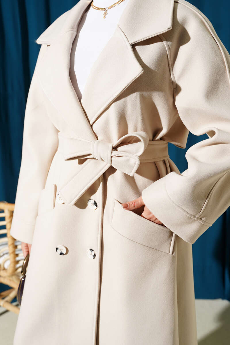 Kruvaze Yaka Altı Düğmeli Kaşe Kaban Latte