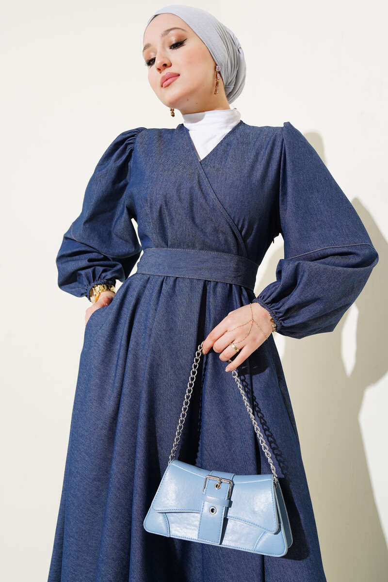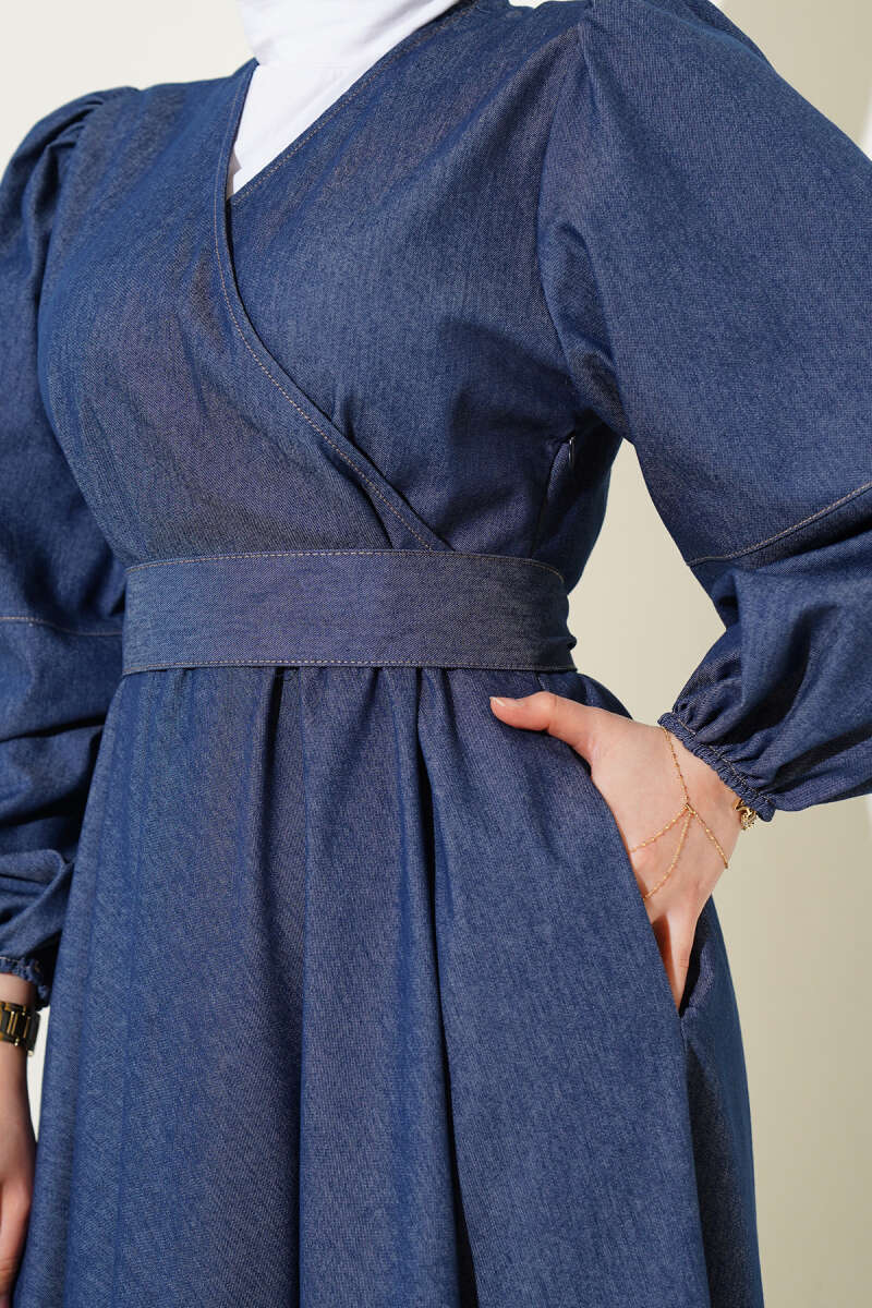 Kuşaklı Beli Lastikli Kot Pantolon Lacivert