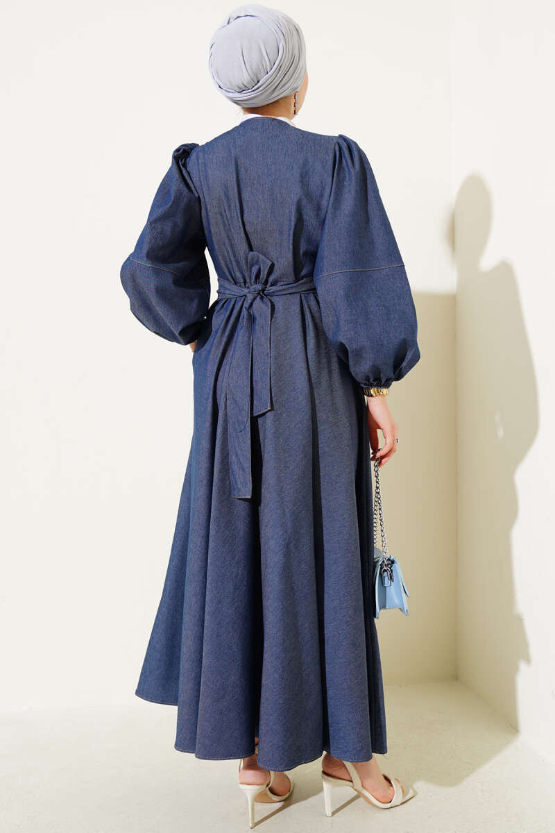 Bel Taşlı Pelerinli Abiye Elbise Lacivert