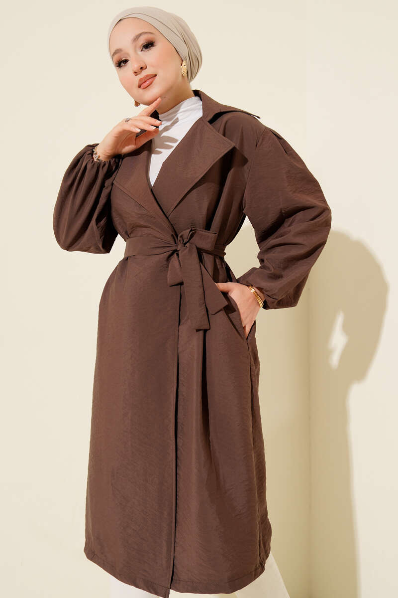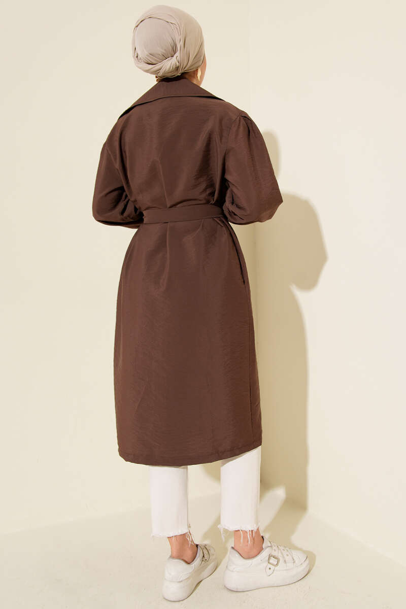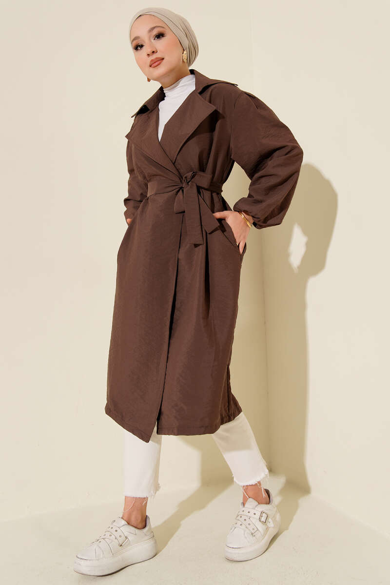 Tek Omuz Apoletli Düğmeli Trençkot Camel