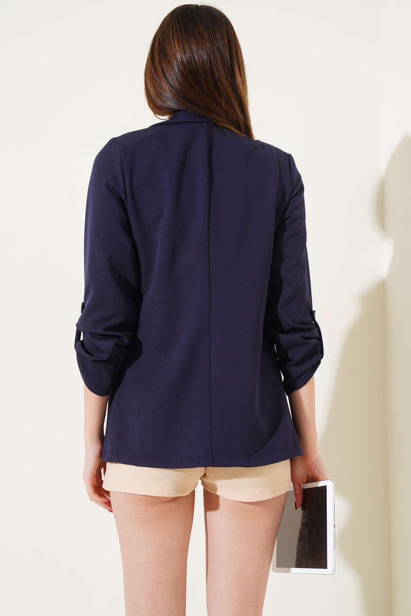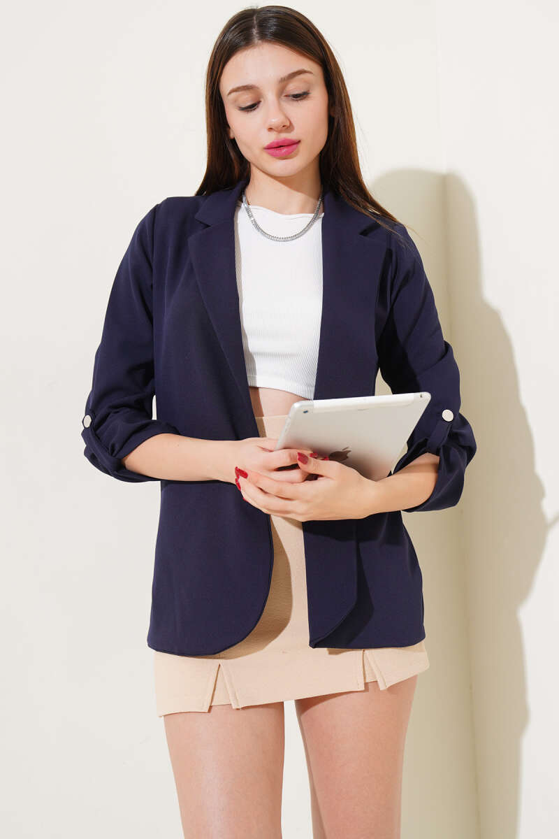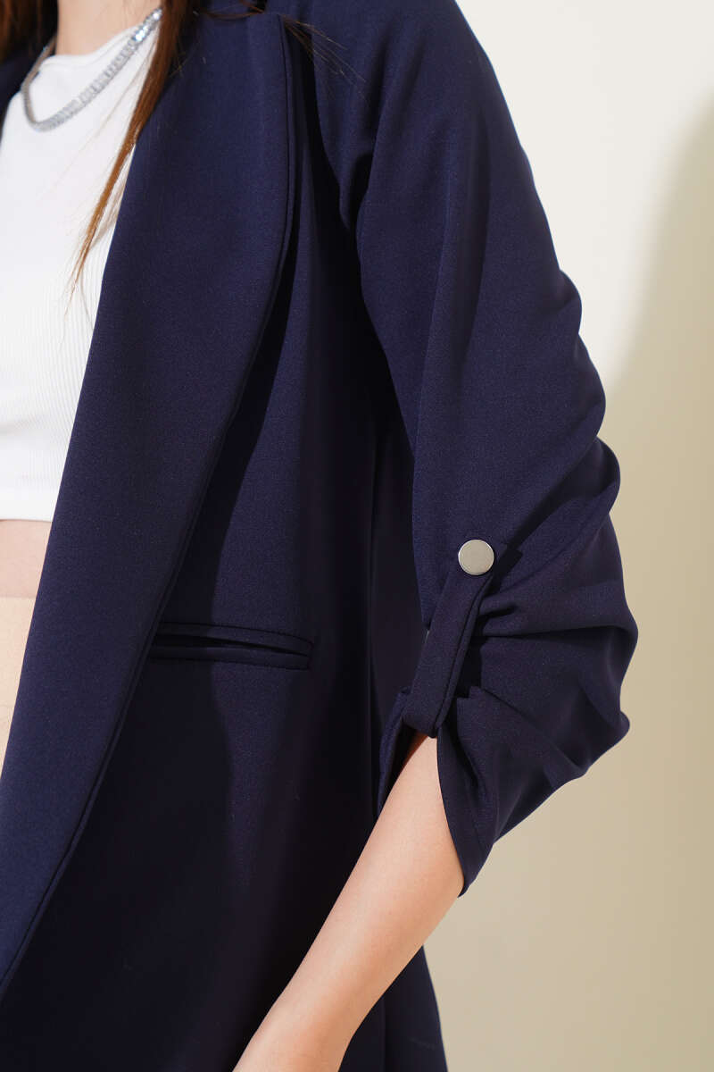 Uzun Kollu Yarım Fermuarlı Bluz Mavi
