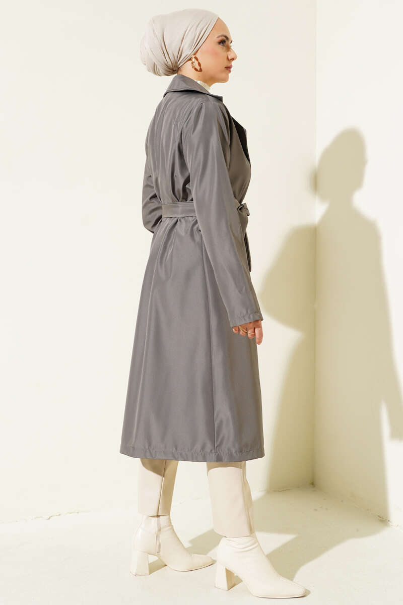 Kruvaze Yaka Bel Kuşaklı Trençkot Kayrak Grisi