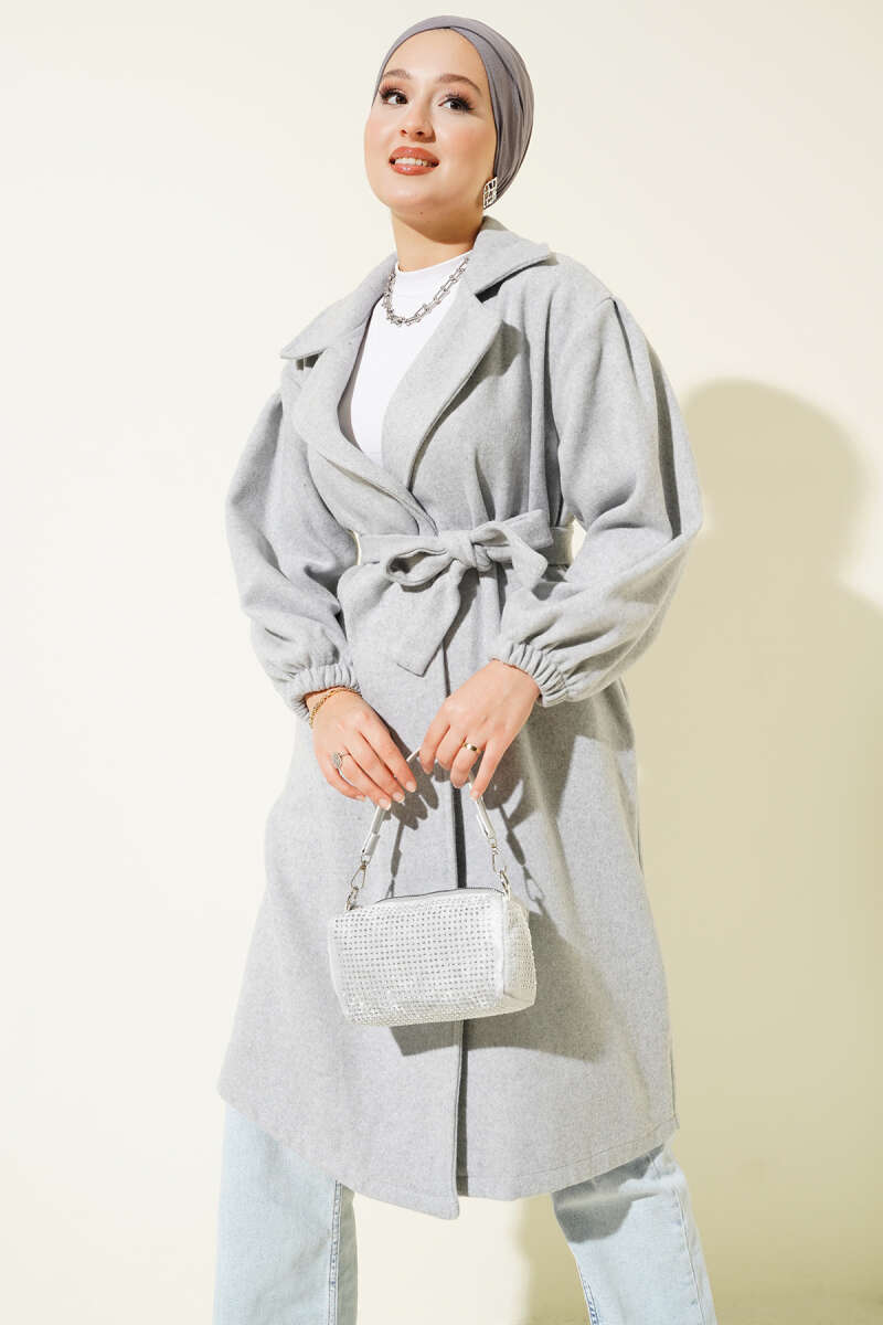 Kruvaze Yakalı Kuşaklı Uzun Kaşe Kaban Taş