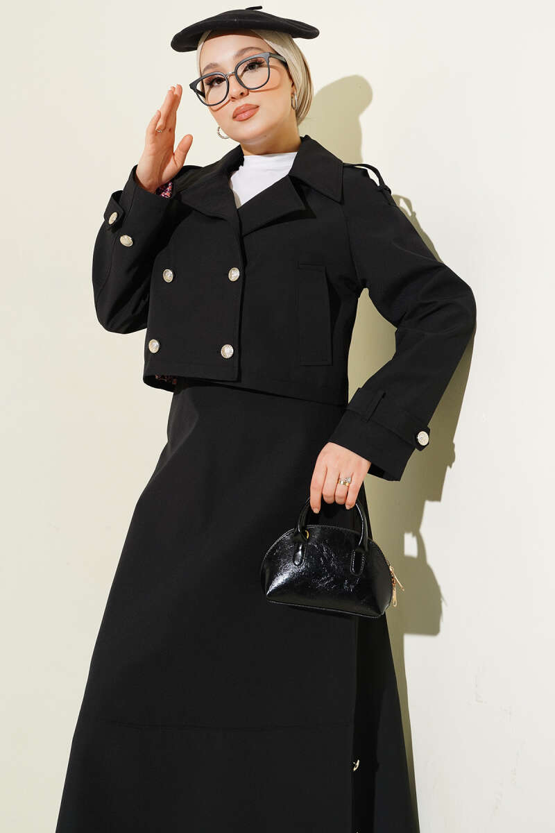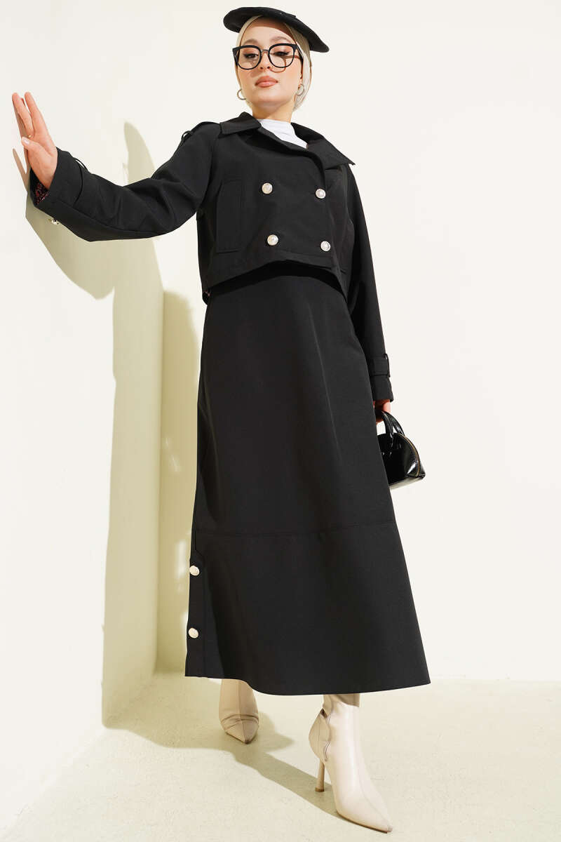 Pantolon Biyeli Fermuarlı Loyşa İkili Takım Siyah