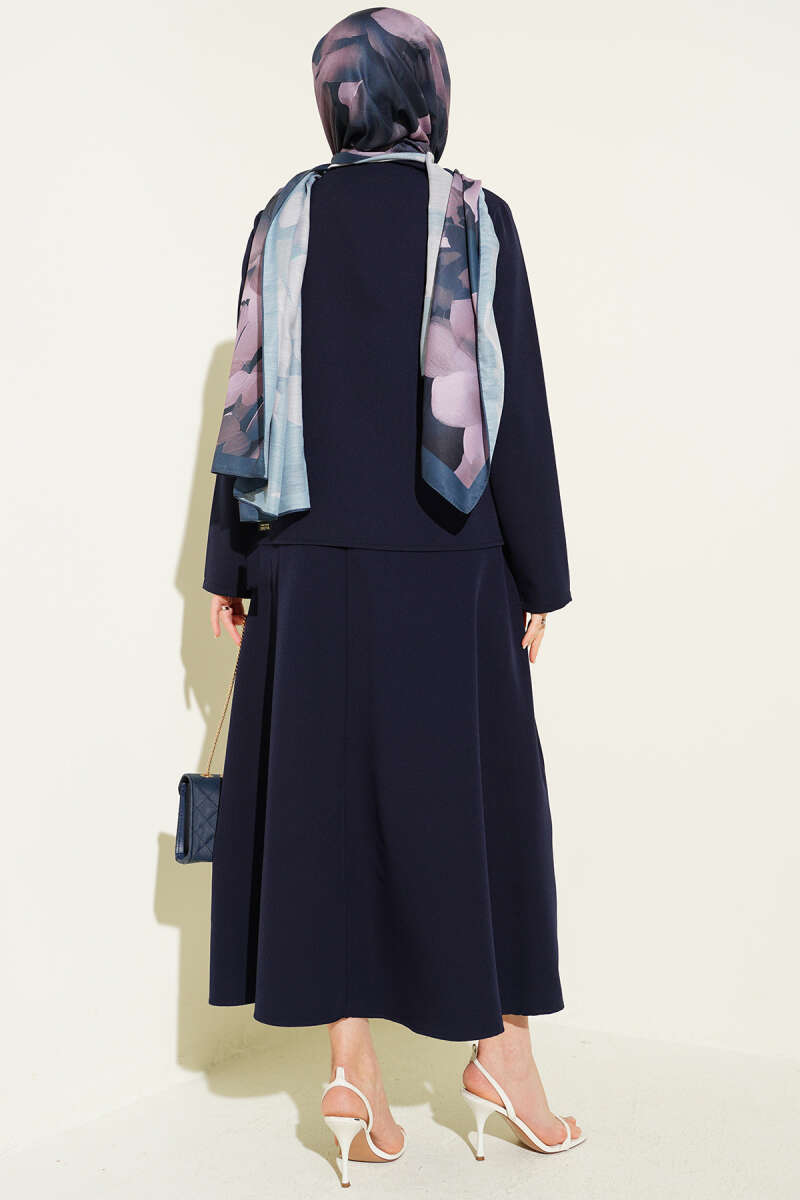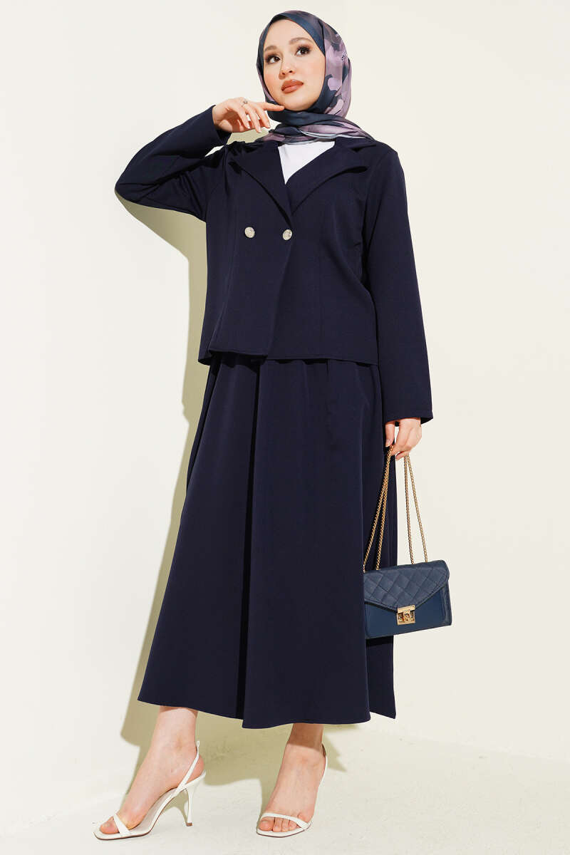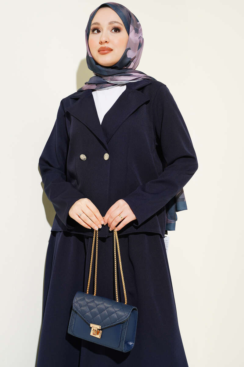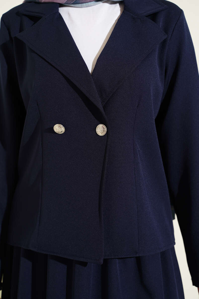 Taşlı Metal Düğmeli Kot İkili Takım Lacivert
