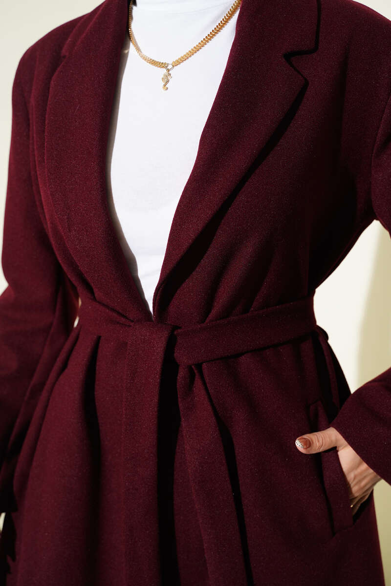 Kapüşonlu Fermuarlı Cepli Hırka Bordo