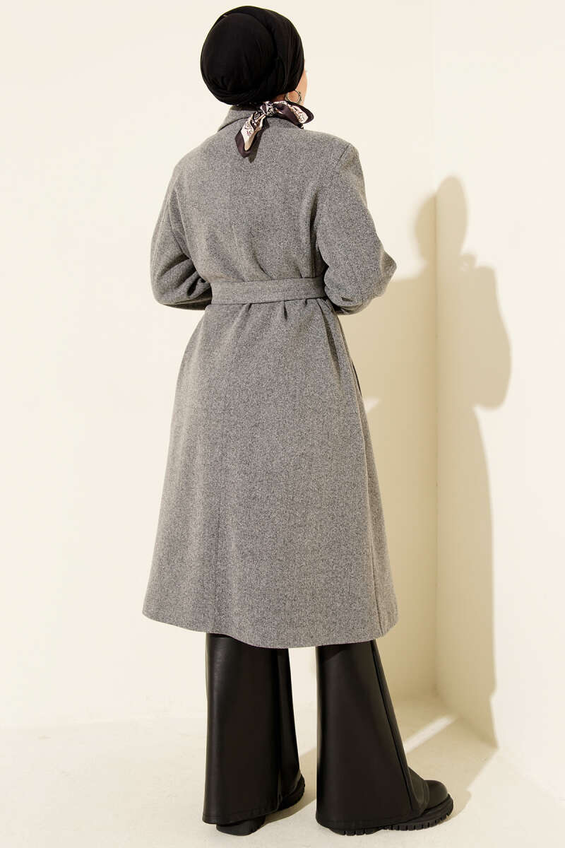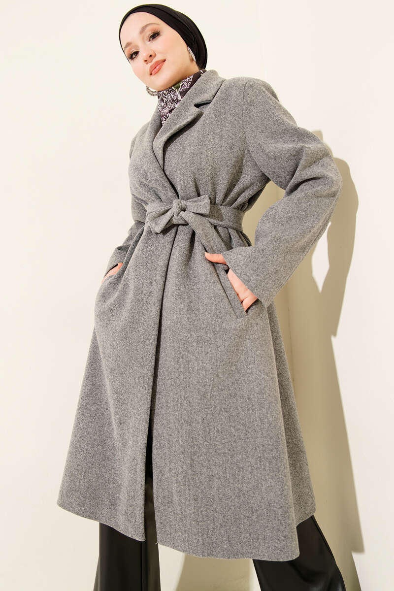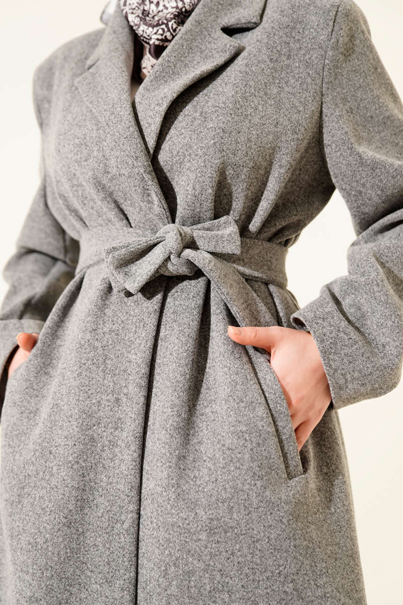 Balon Kollu Uzun Model Melanj Gri Kaşe Kaban