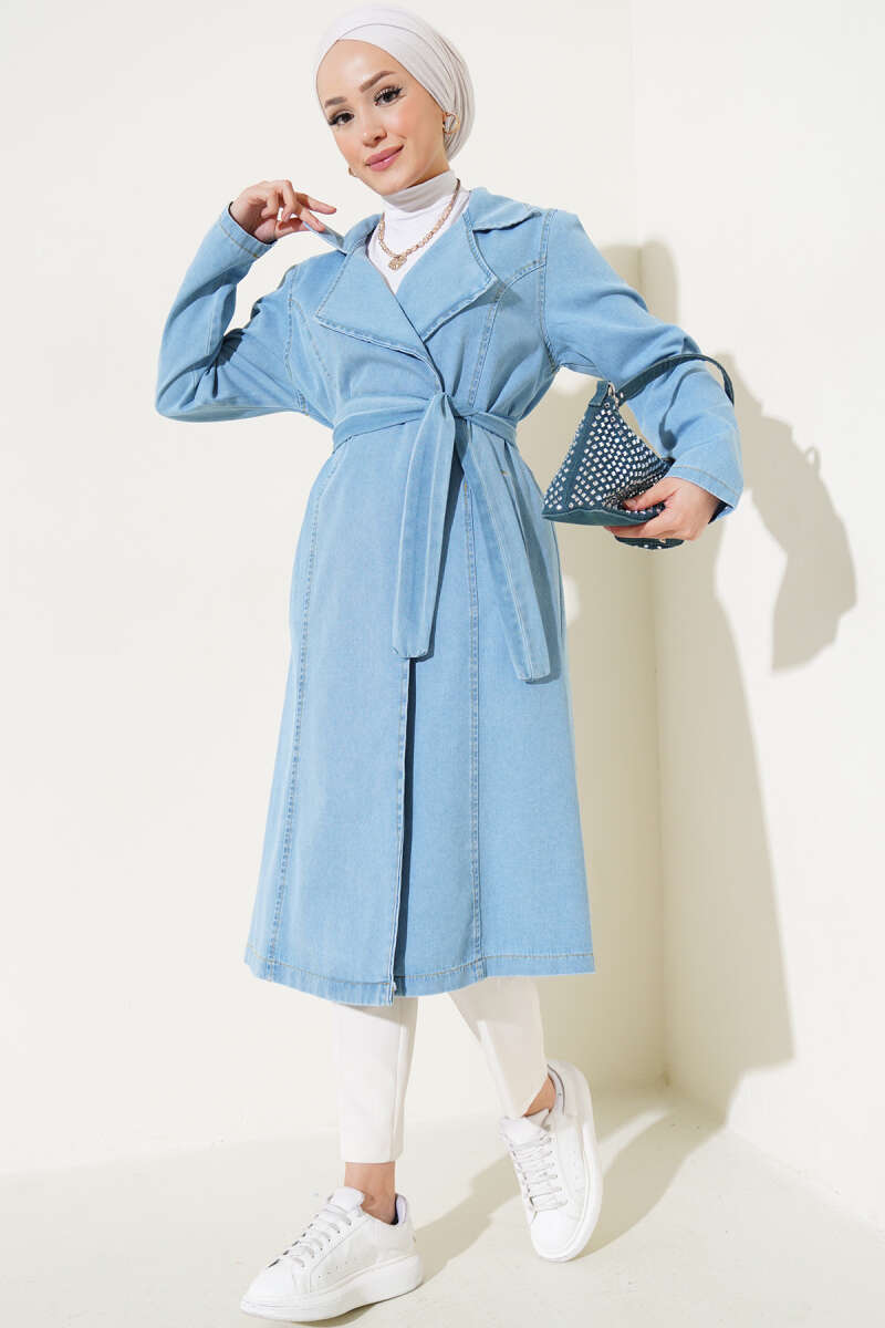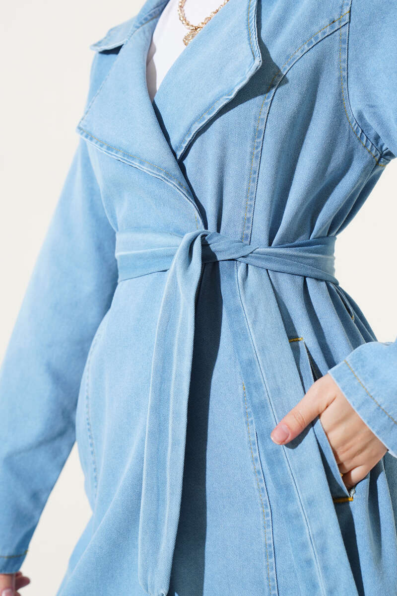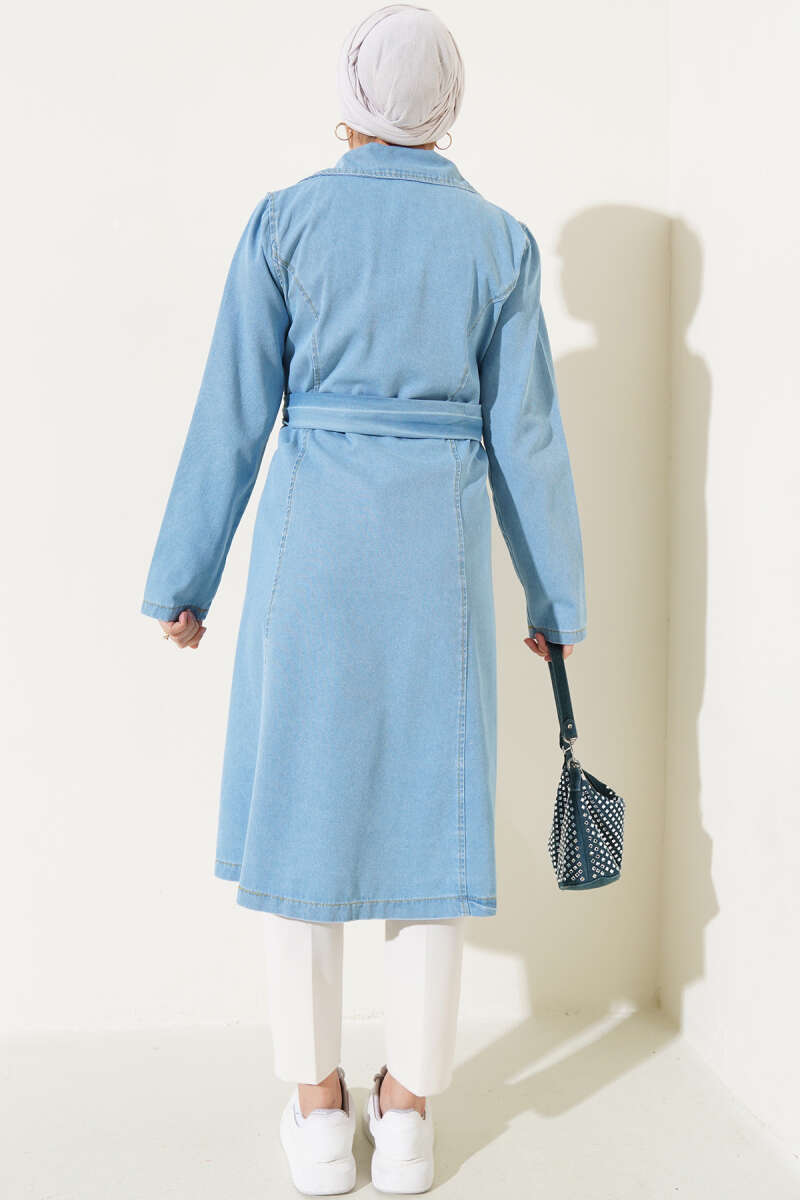 Kruvaze Yaka Cepli Kot Trençkot Buz Mavisi