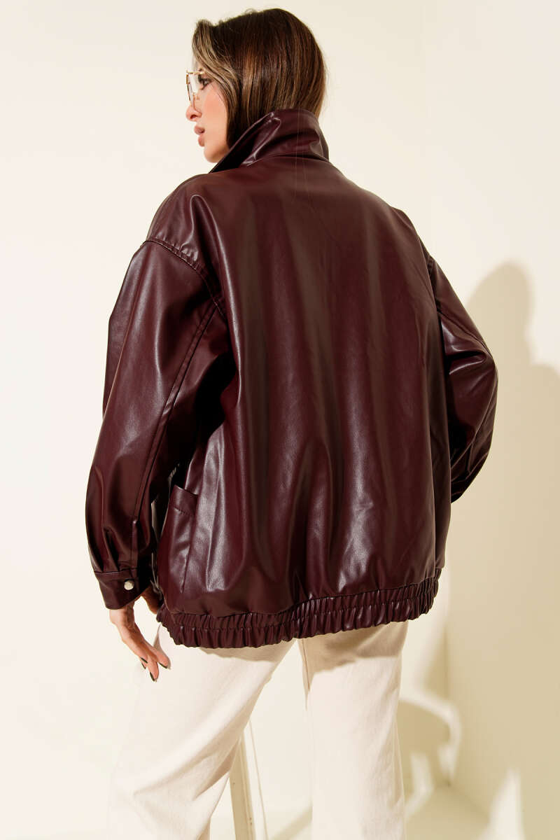 Gold Düğmeli Şeritli Triko Hırka Kahve