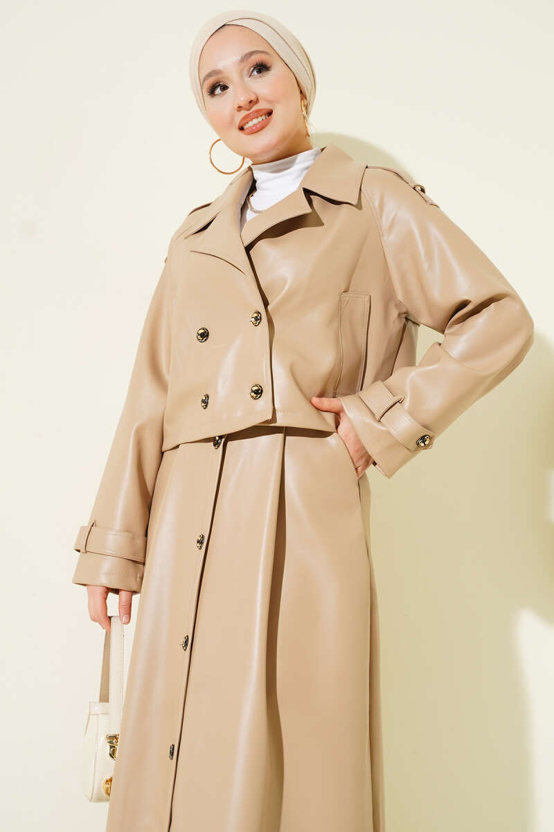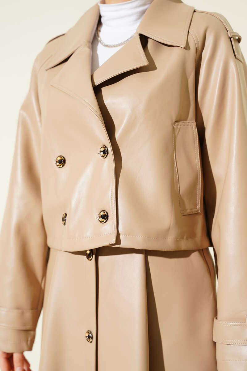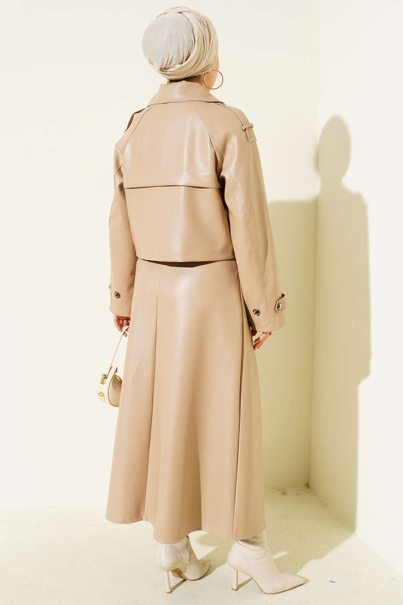 Kruvaze Yaka Deri Etekli İkili Takım Taba