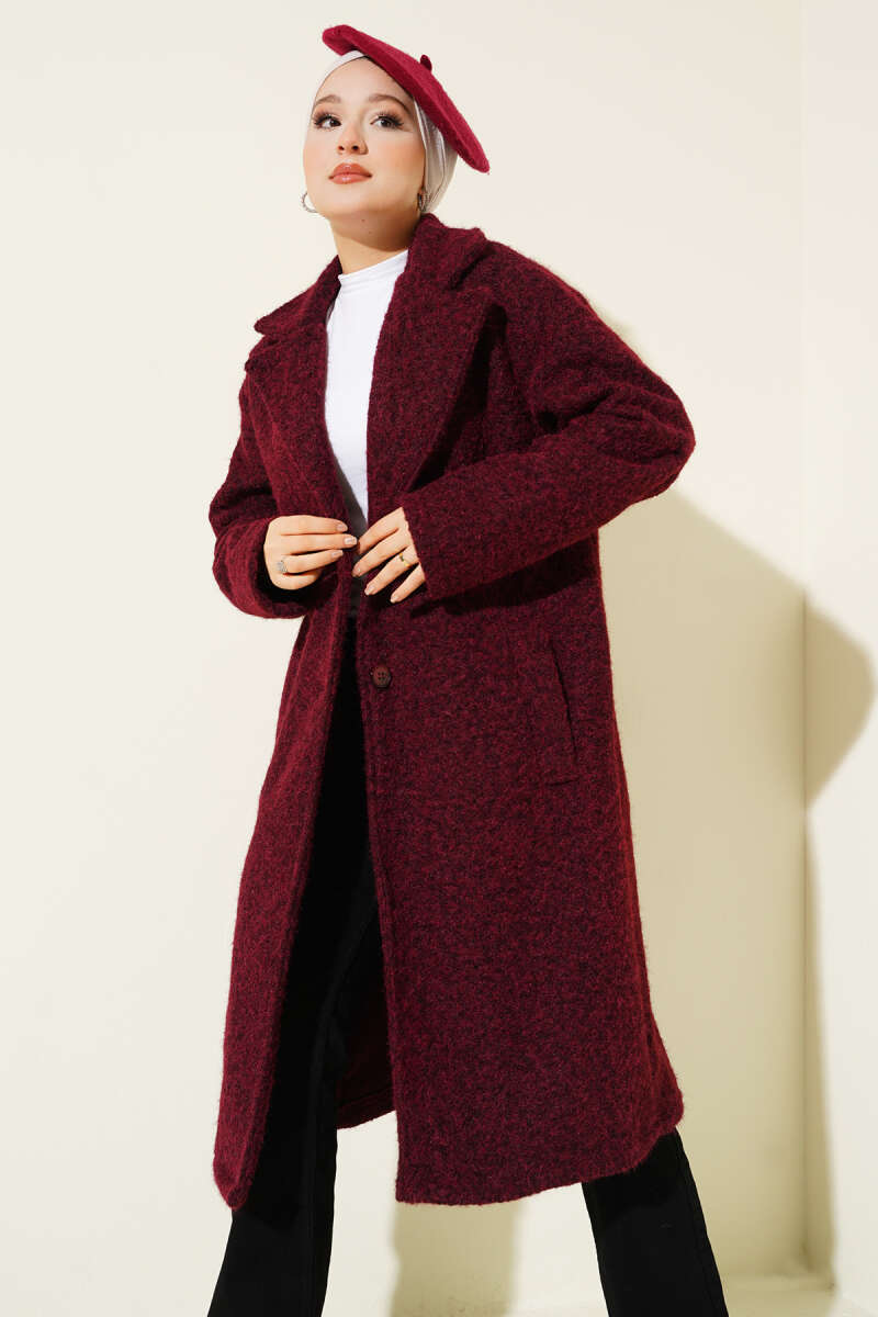 Yaka ve Bilek Kürklü Kaşe Kaban Bordo
