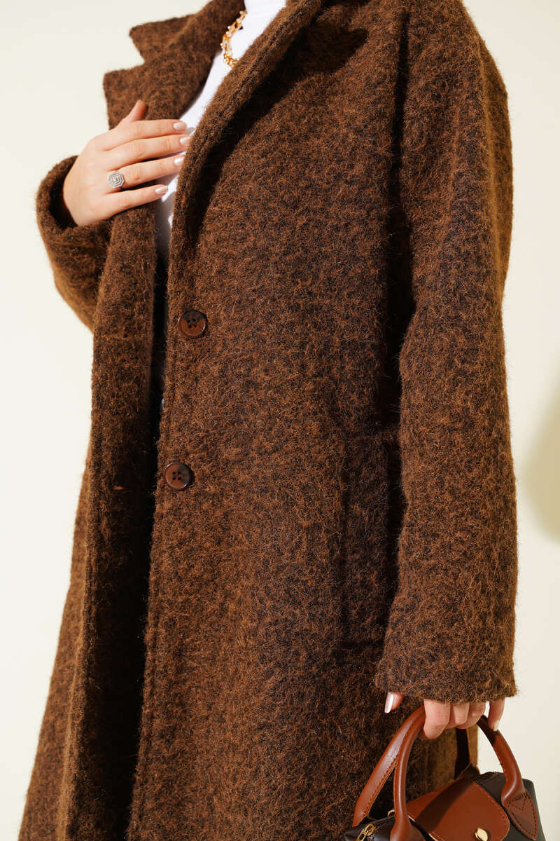 Bilek Apoletli Parçalı Kaşe Kaban Acı Kahve