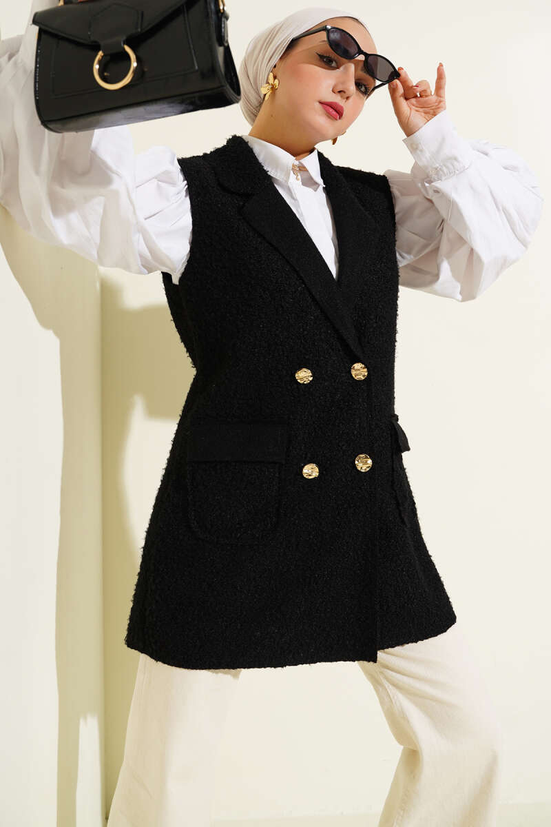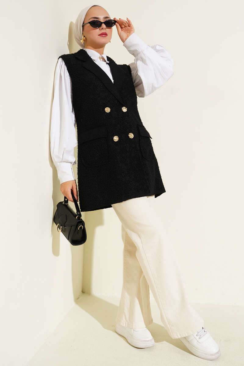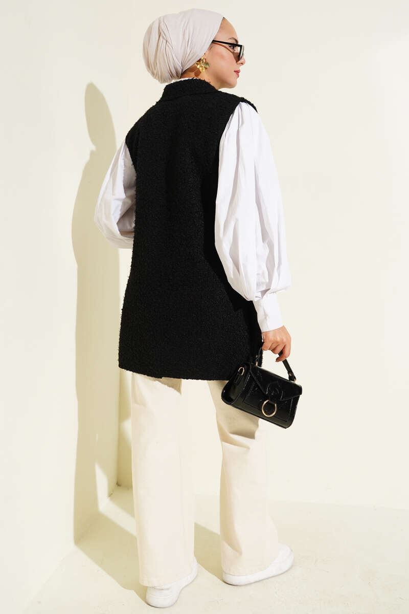 Yarasa Kol Kemerli Buklet Ceket Siyah