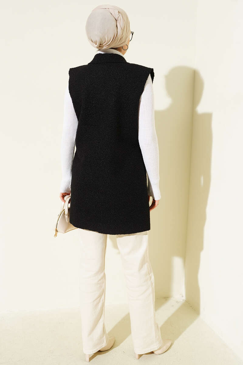 Tek Düğmeli Kemerli Sakallı Yelek Siyah