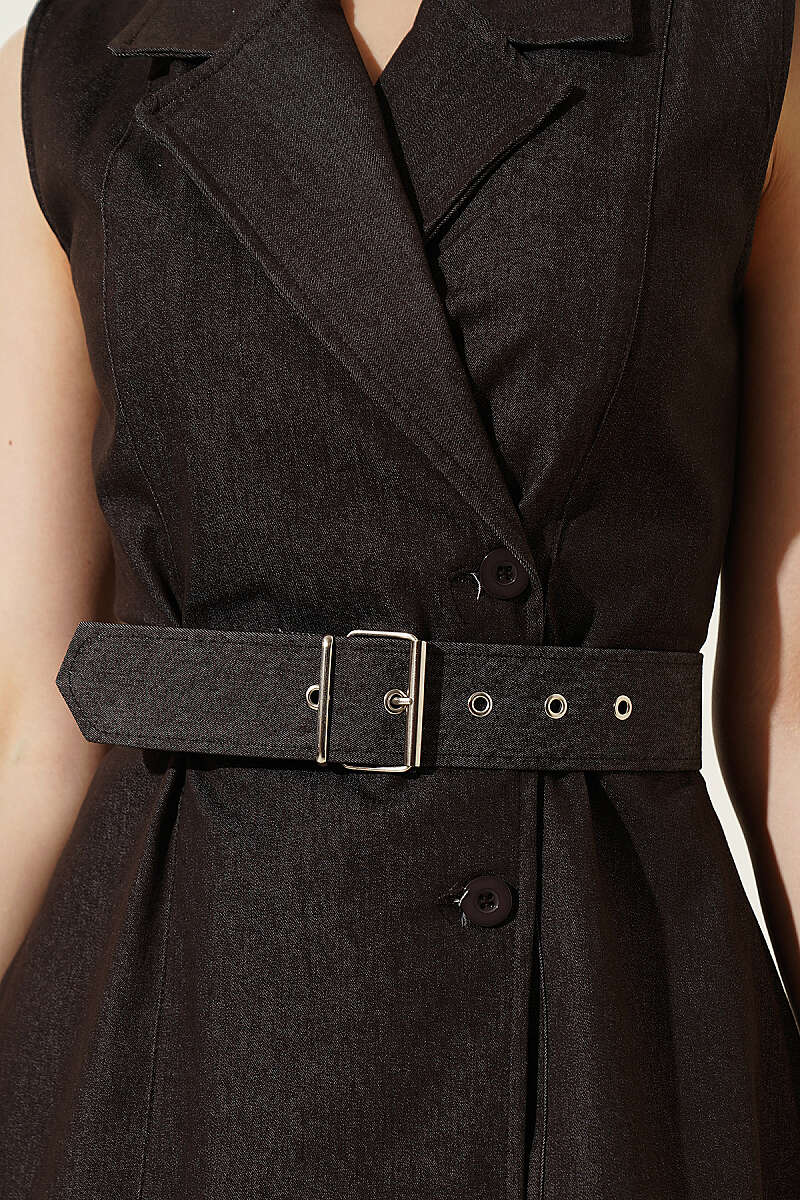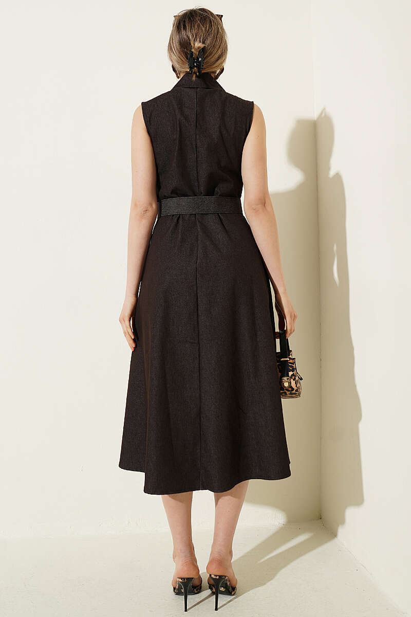 Düğme Görünümlü Kolsuz Midi Elbise Kahve