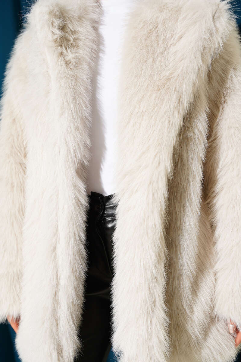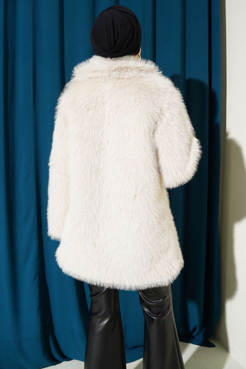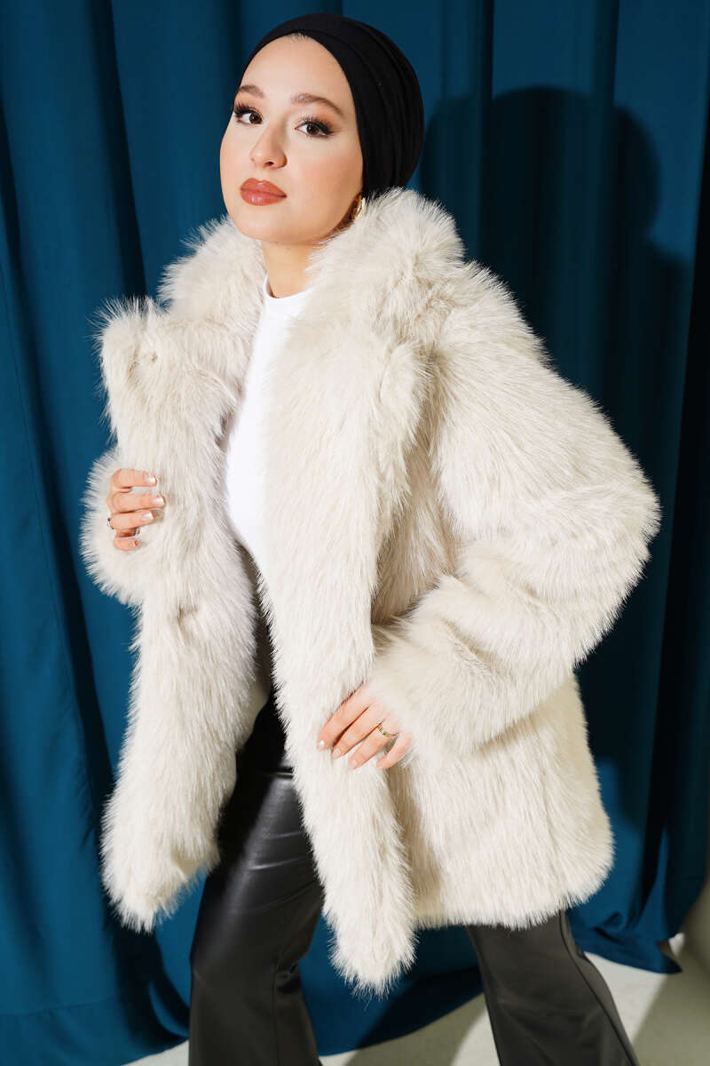 Kruvaze Yaka Salaş Cepli Kürk Mont Gri
