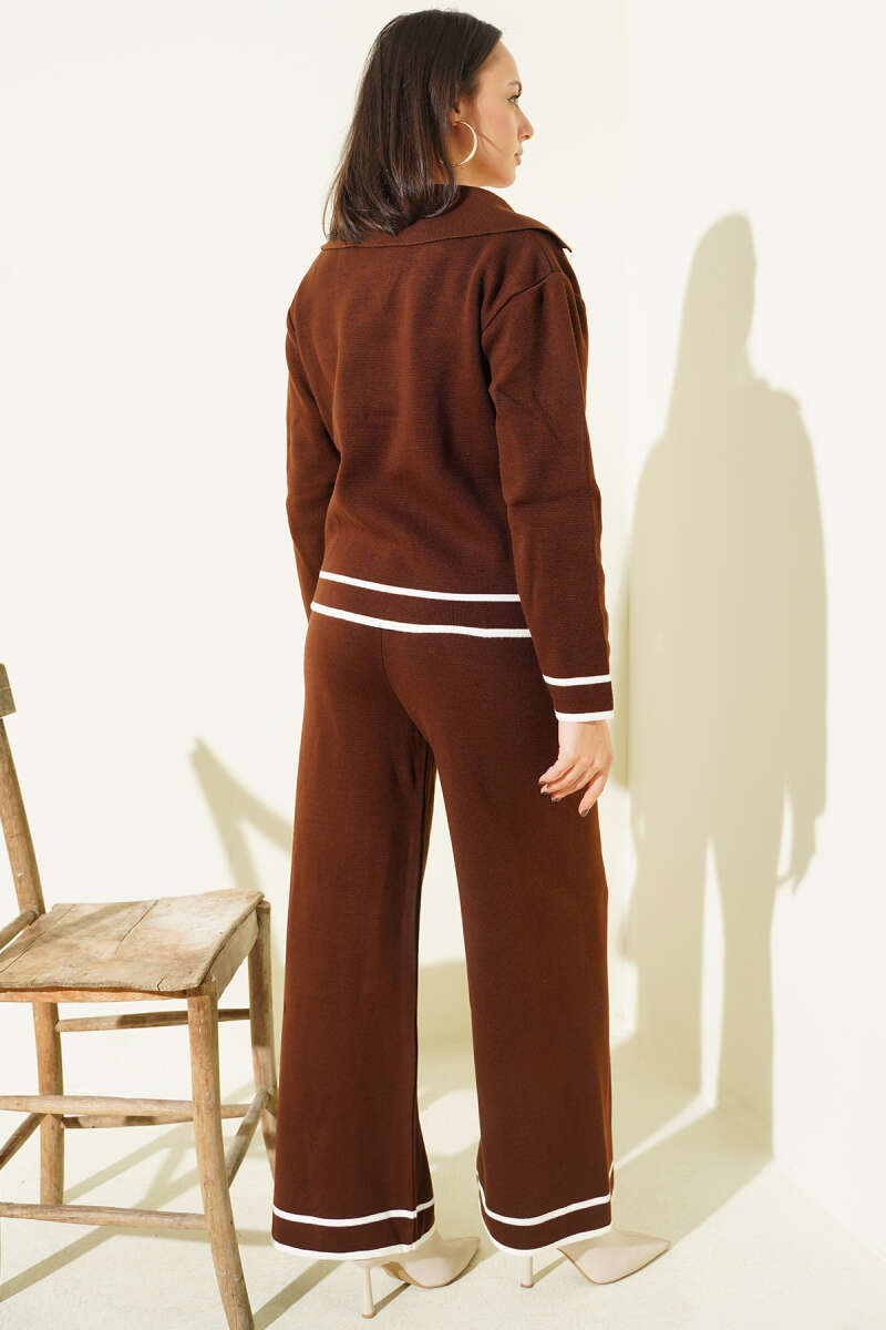 Bisiklet Yaka Yandan Bağlamalı İkili Takım Kahve