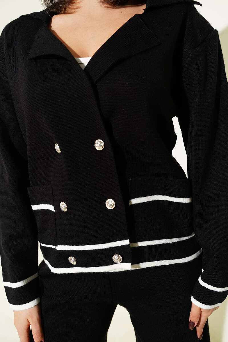 Kruvaze Yaka Düğmeli Triko İkili Takım Lacivert