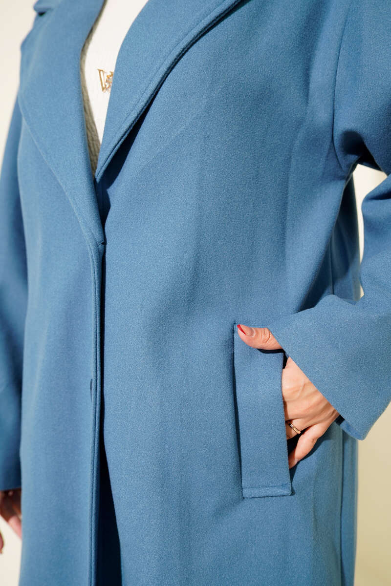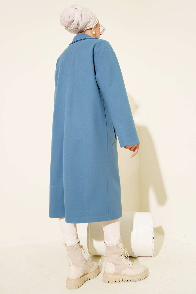 Kruvaze Yaka Kuşak Detaylı Kısa Kaşe Kaban Taş