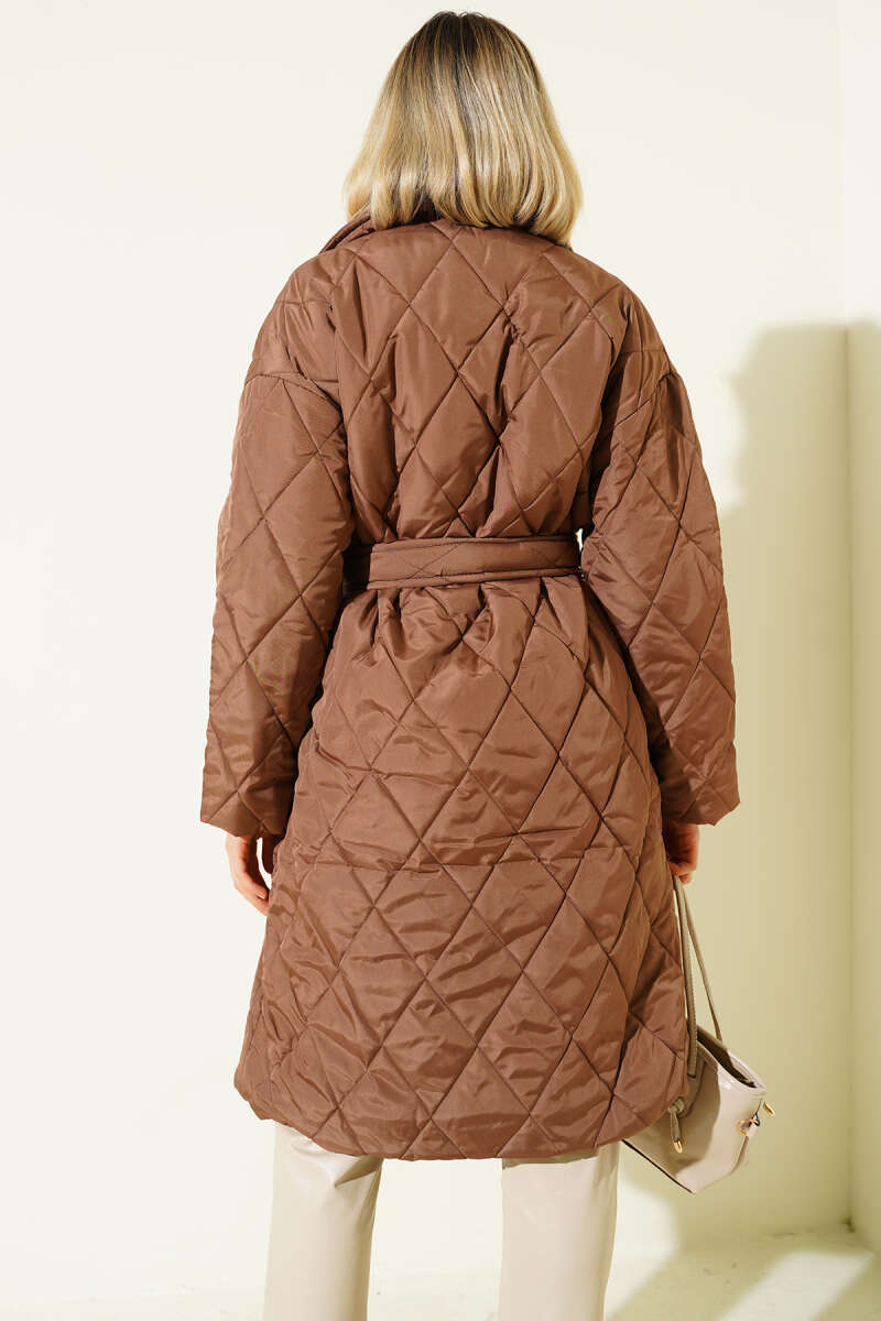 Kruvaze Yaka Kapitone Kuşaklı Mont Taş