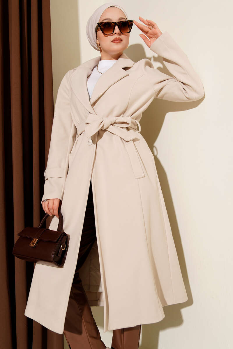 Kruvaze Yaka Kaşe Kaban Bej