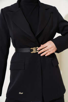 Düğmeli Gömlek Yaka Keçe Ceket Siyah