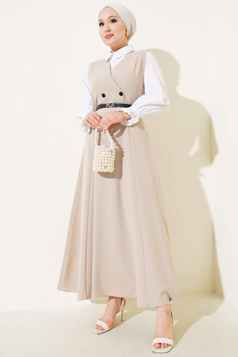 Gül Detaylı Pelerinli Abiye Elbise Pudra