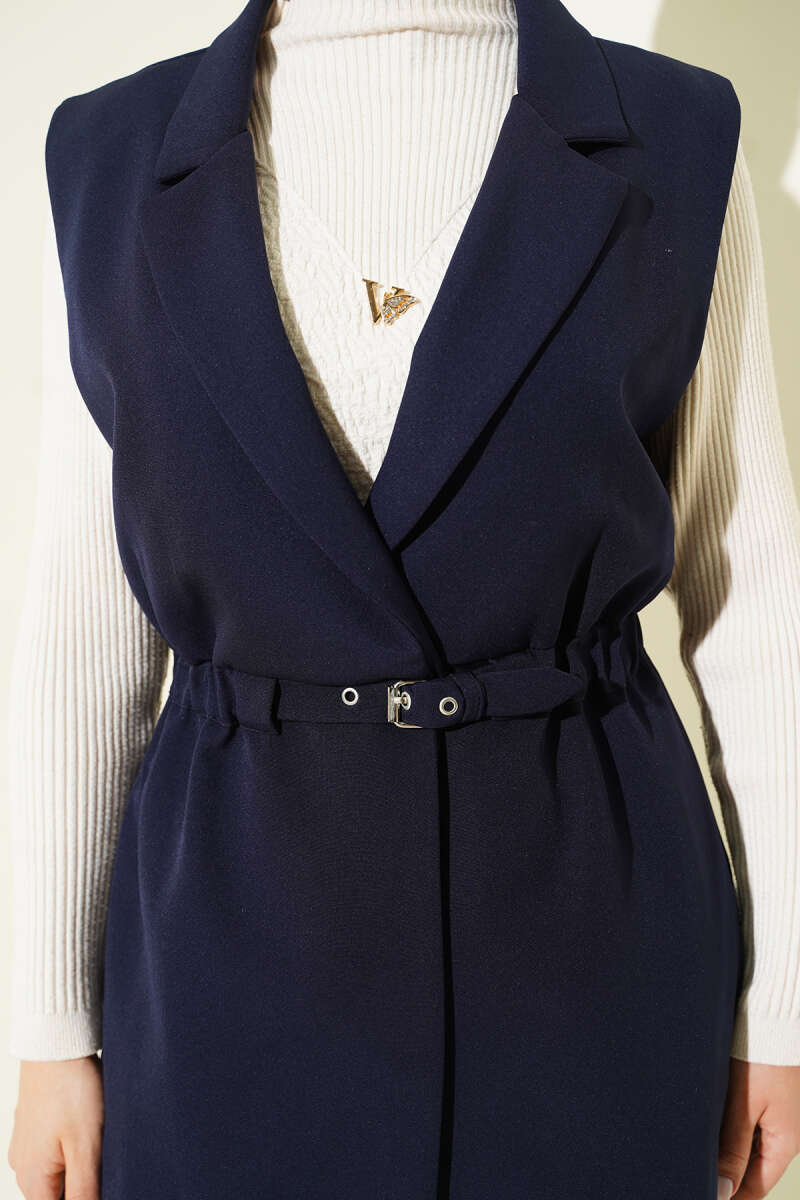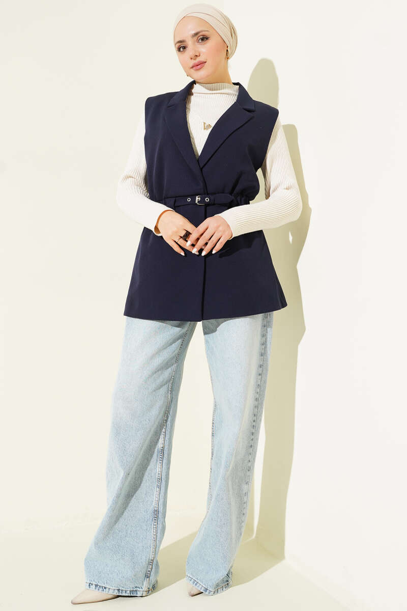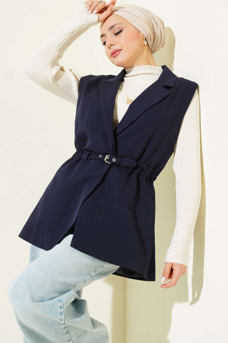 Kruvaze Yaka Kemerli Yelek Haki