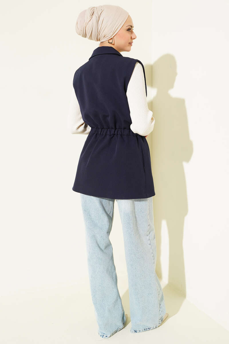 Yan Düğmeli İp Bağcıklı Yelek Haki
