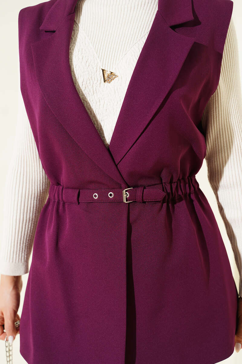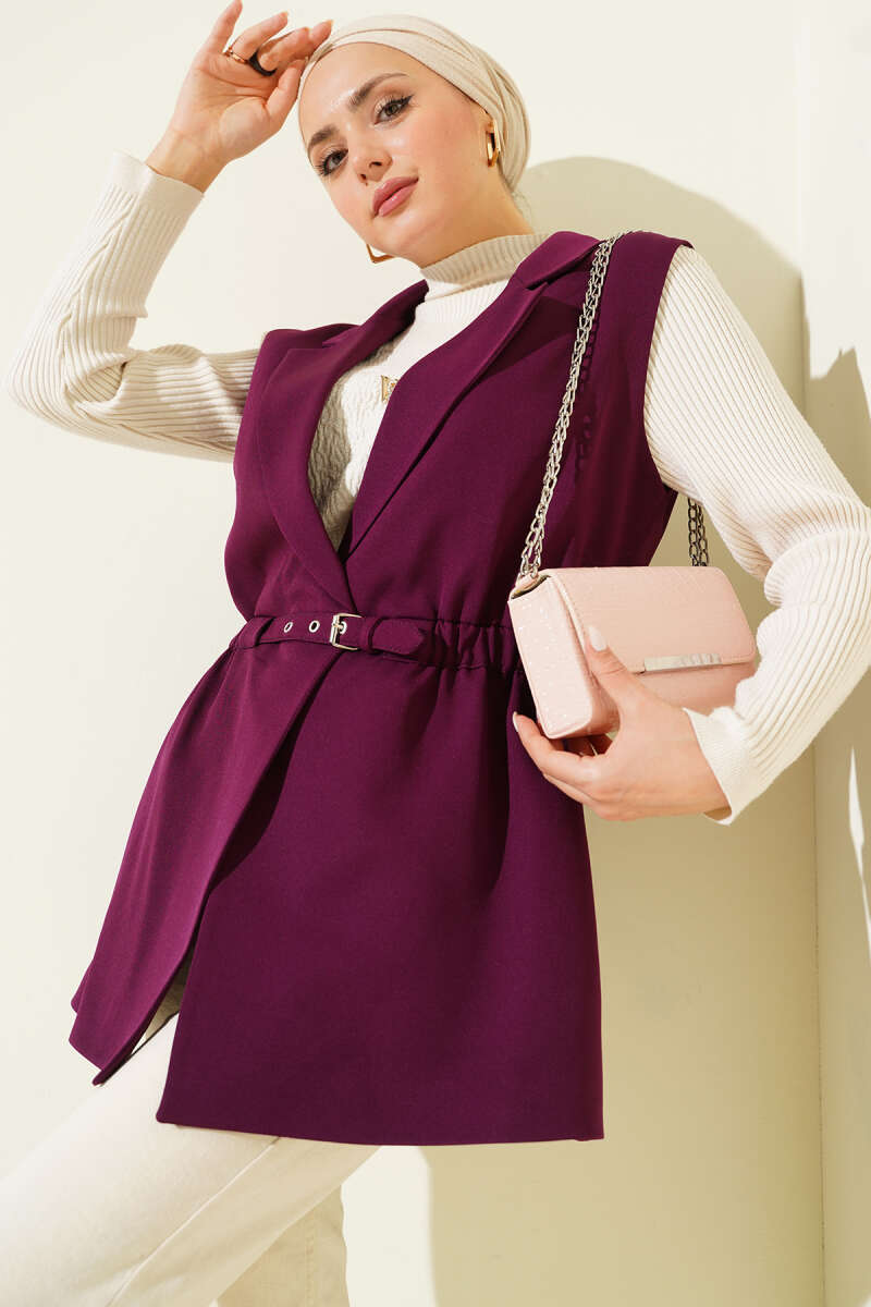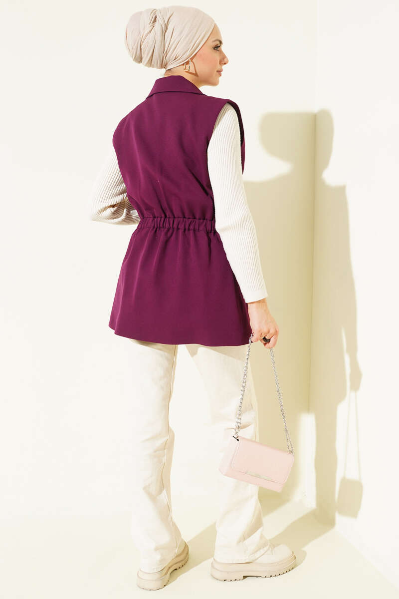 Yan Düğmeli İp Bağcıklı Yelek Mor