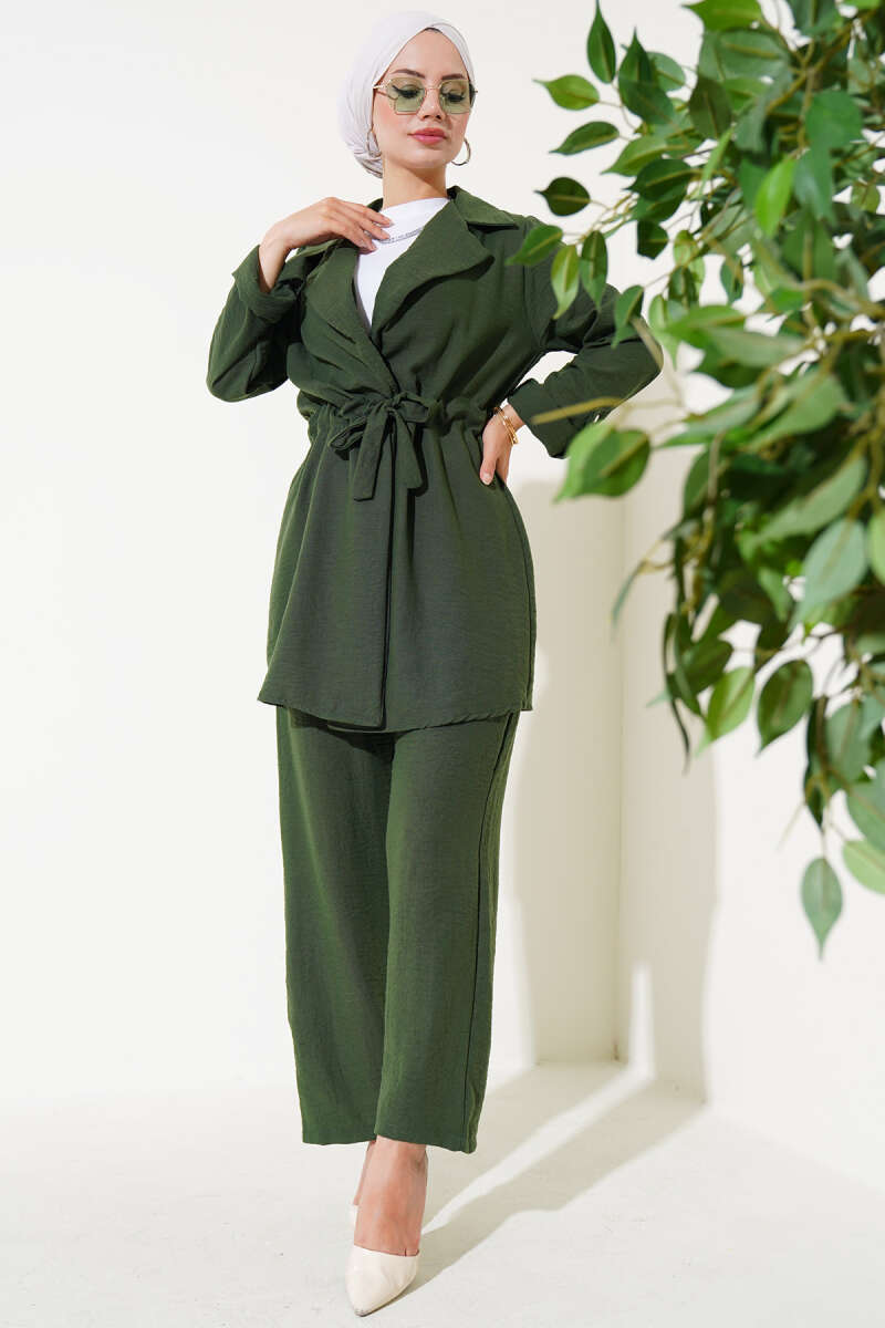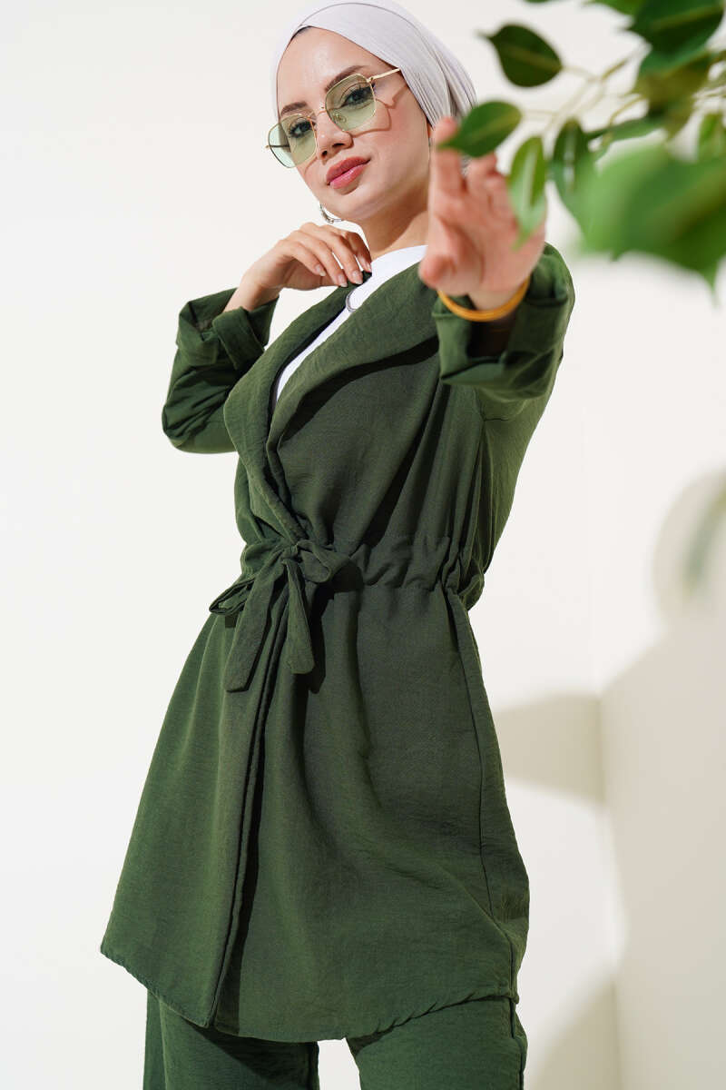 Balıkçı Yaka Fitilli Kuşaklı İkili Takım Füme