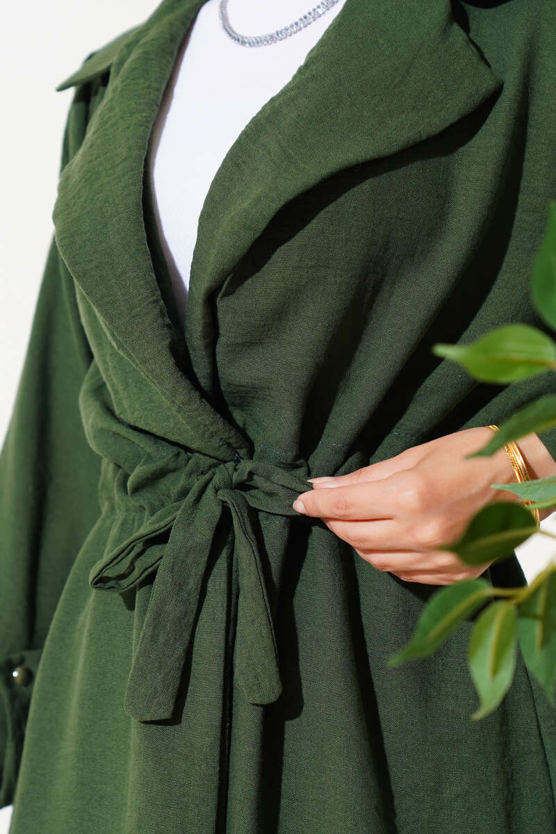 Kruvaze Yaka Belden Bağlamalı Kaban Siyah