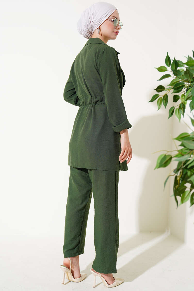 Bel Lastik Detaylı Bluzlu İkili Takım Bej