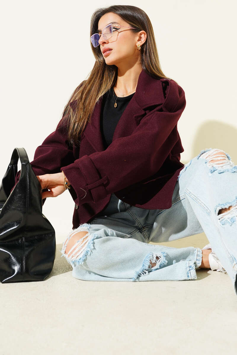Loyşa Omuz Taşlı Fermuarlı İkili Takım Mürdüm