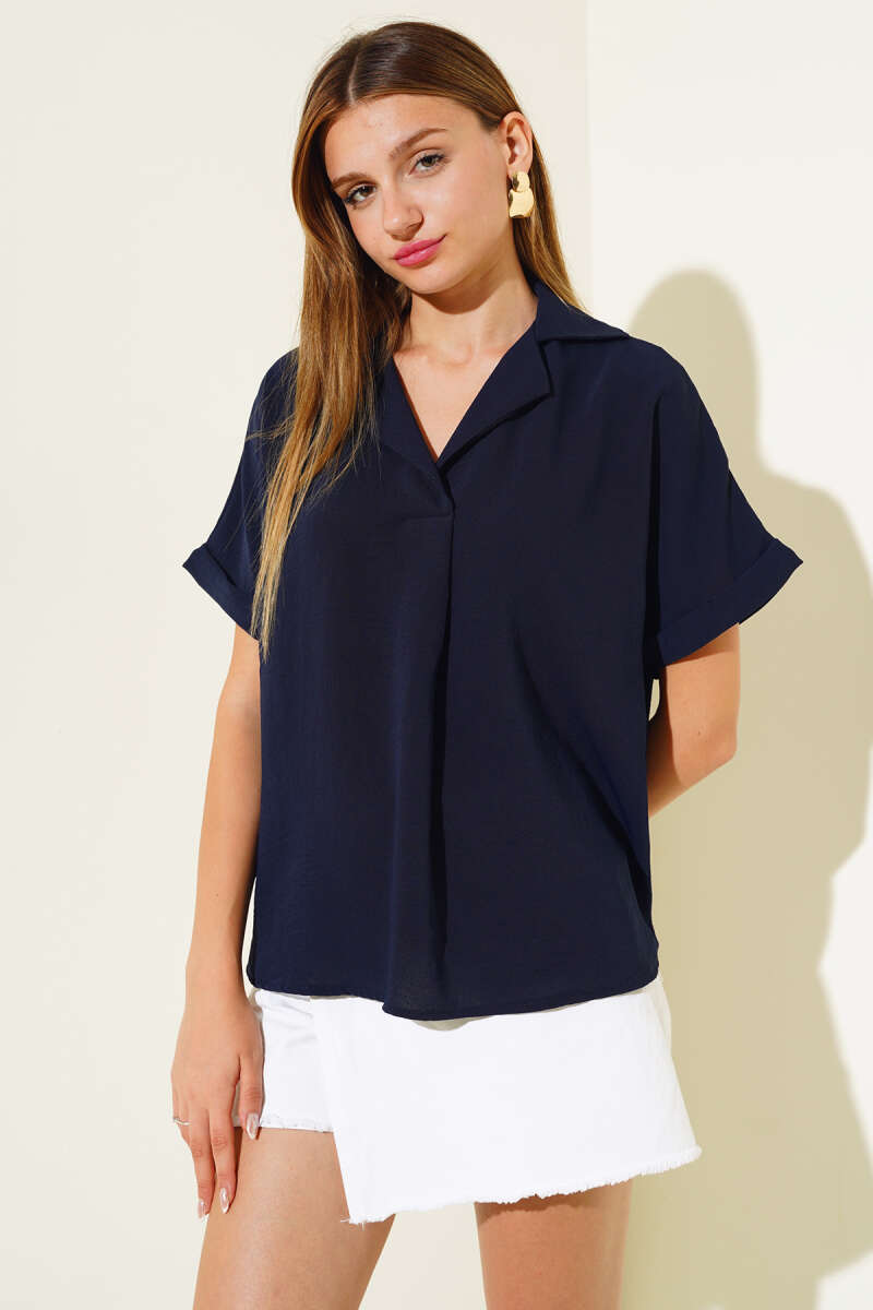 Uzun Kollu Yarım Fermuarlı Bluz Mavi