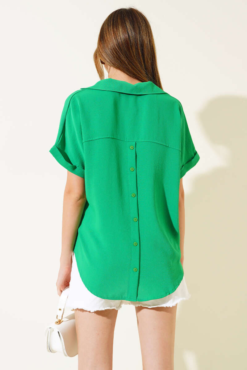 Uzun Kollu Yarım Fermuarlı Bluz Lime