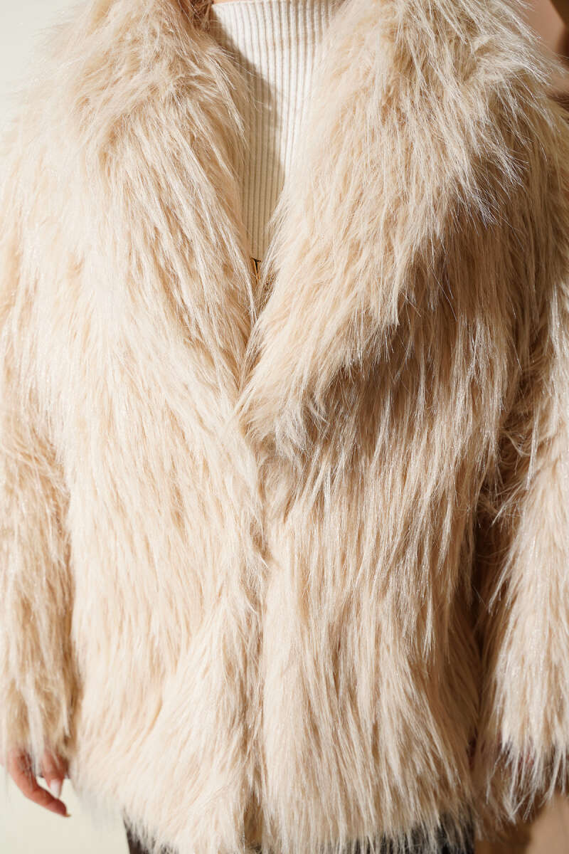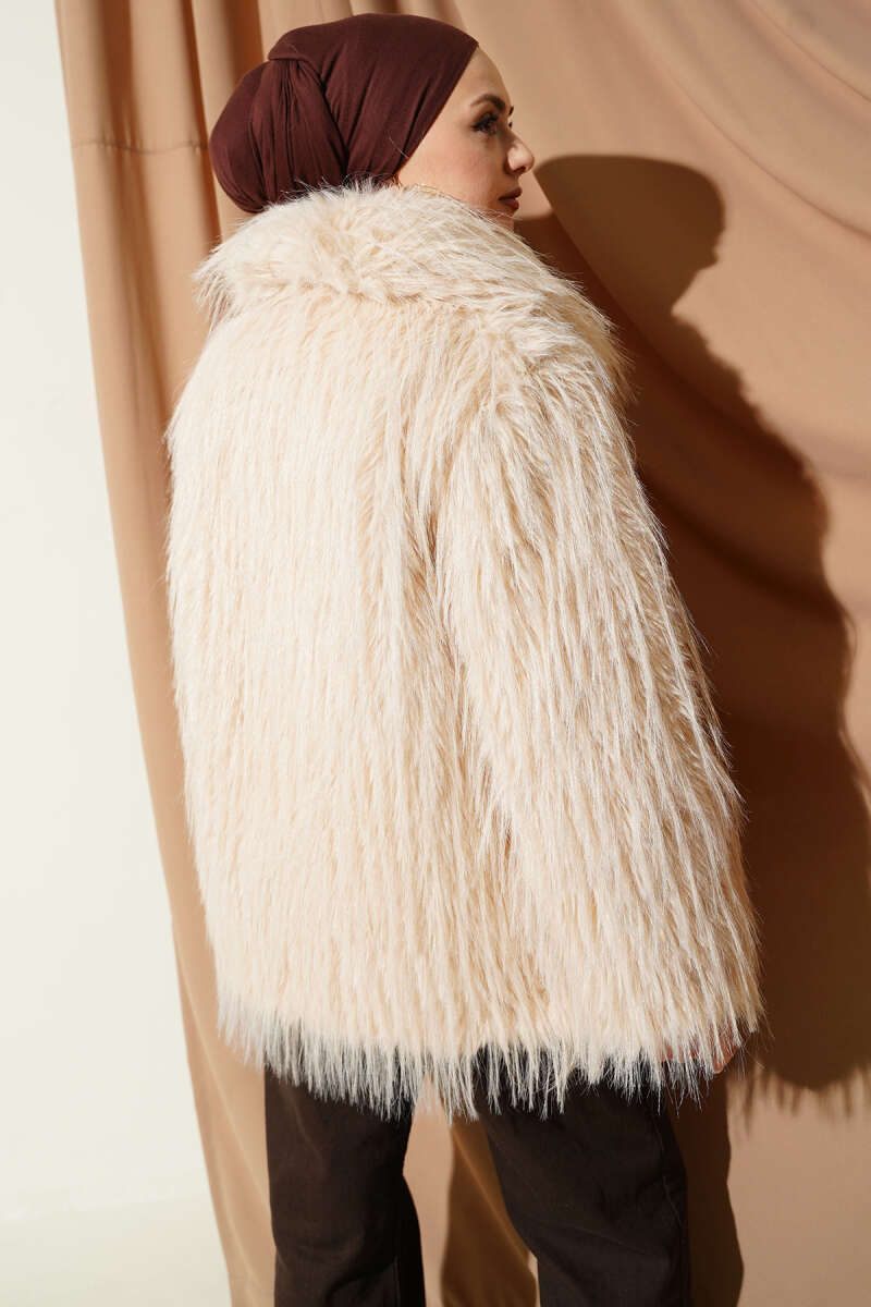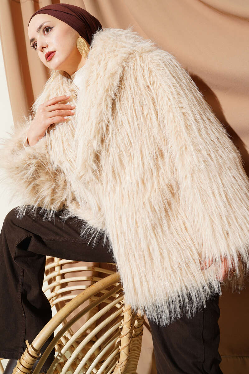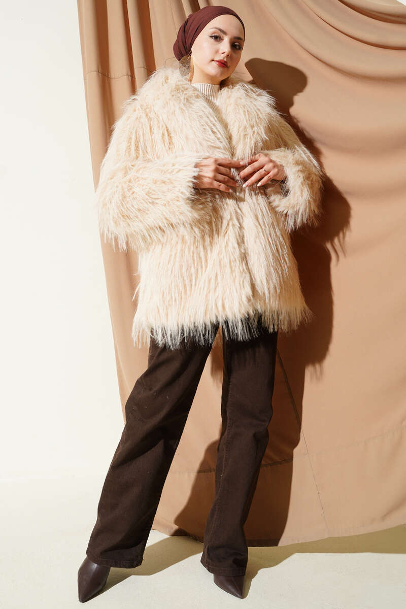 Kruvaze Yaka Kürklü Mont Acı Kahve