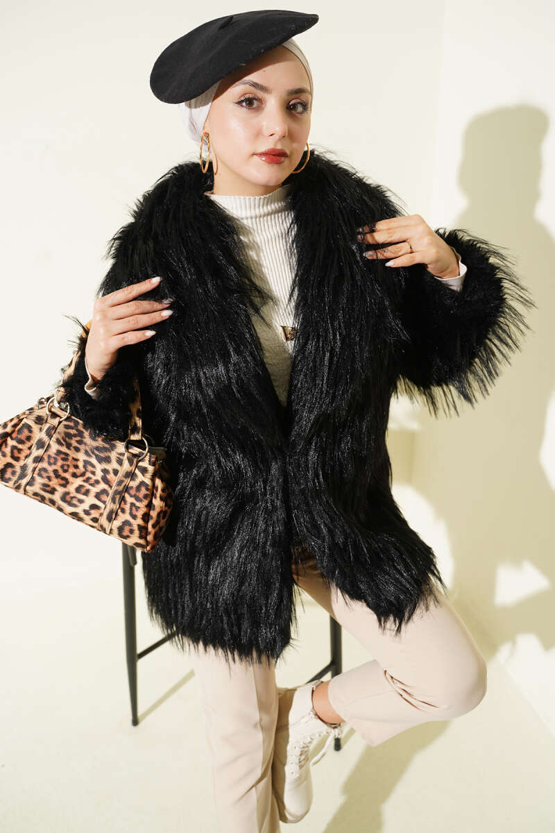 Kruvaze Yaka Kürklü Mont Vizon