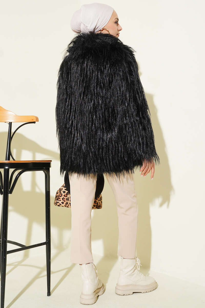 Kruvaze Yaka Kürklü Mont Füme