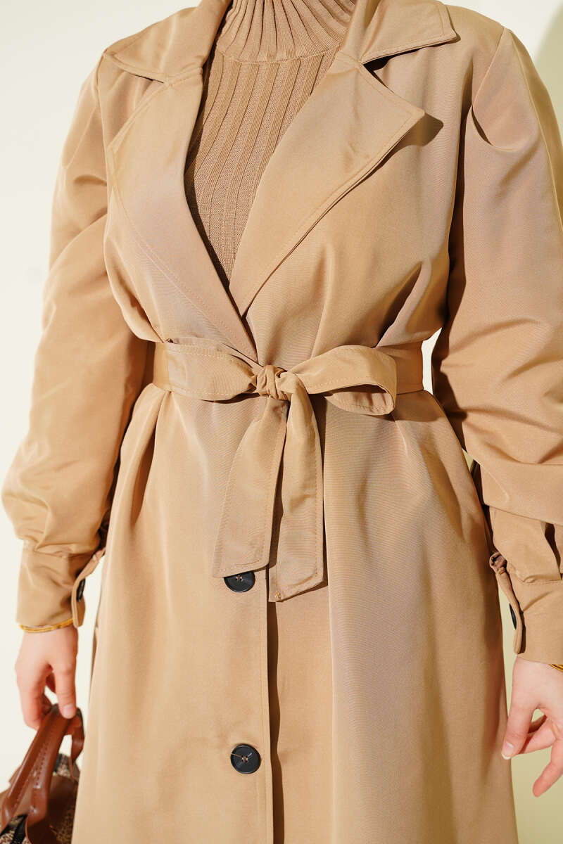 Pelerin Detaylı Apoletli Trençkot Kahve