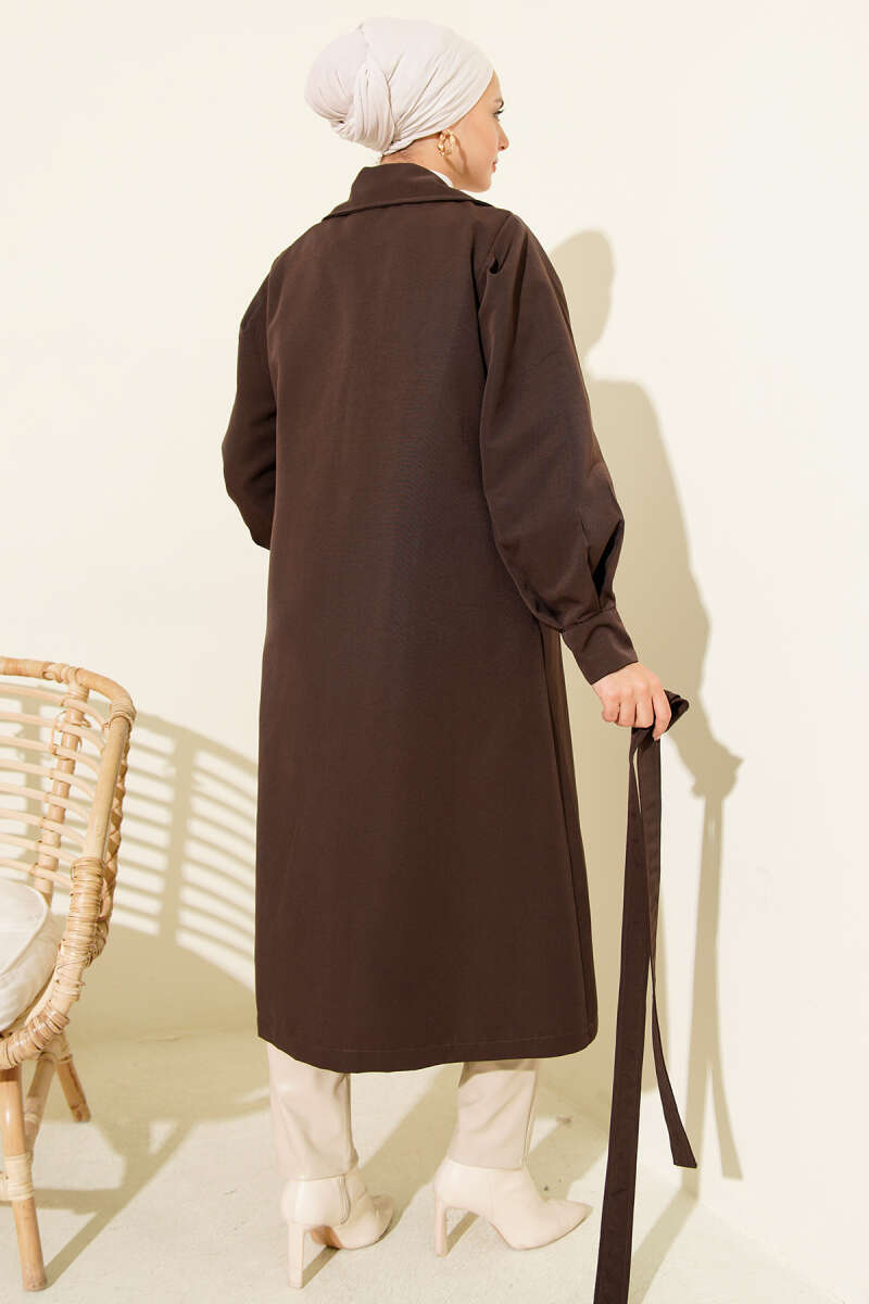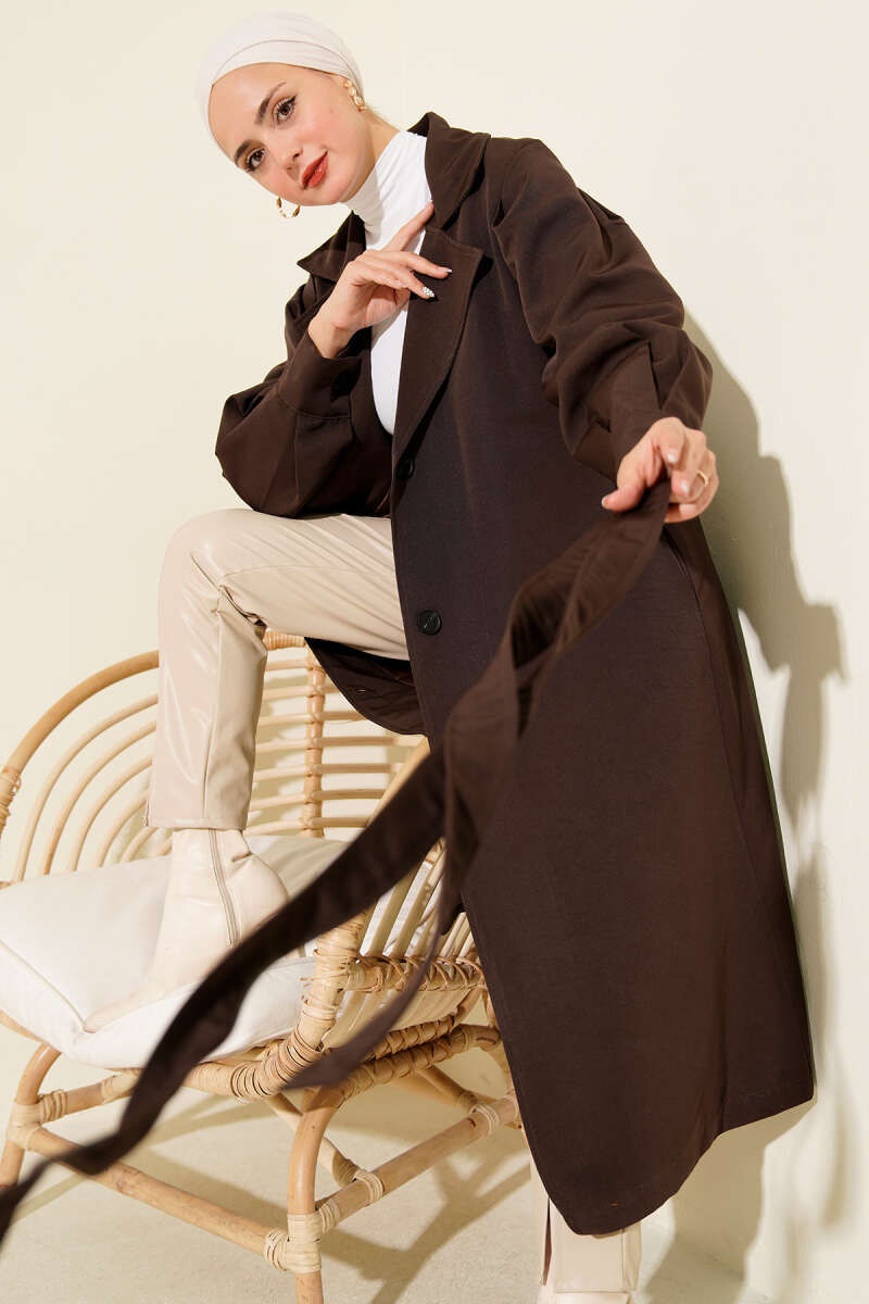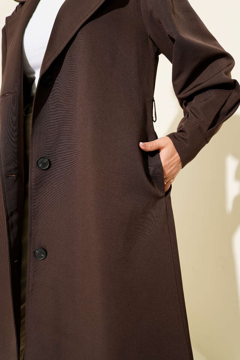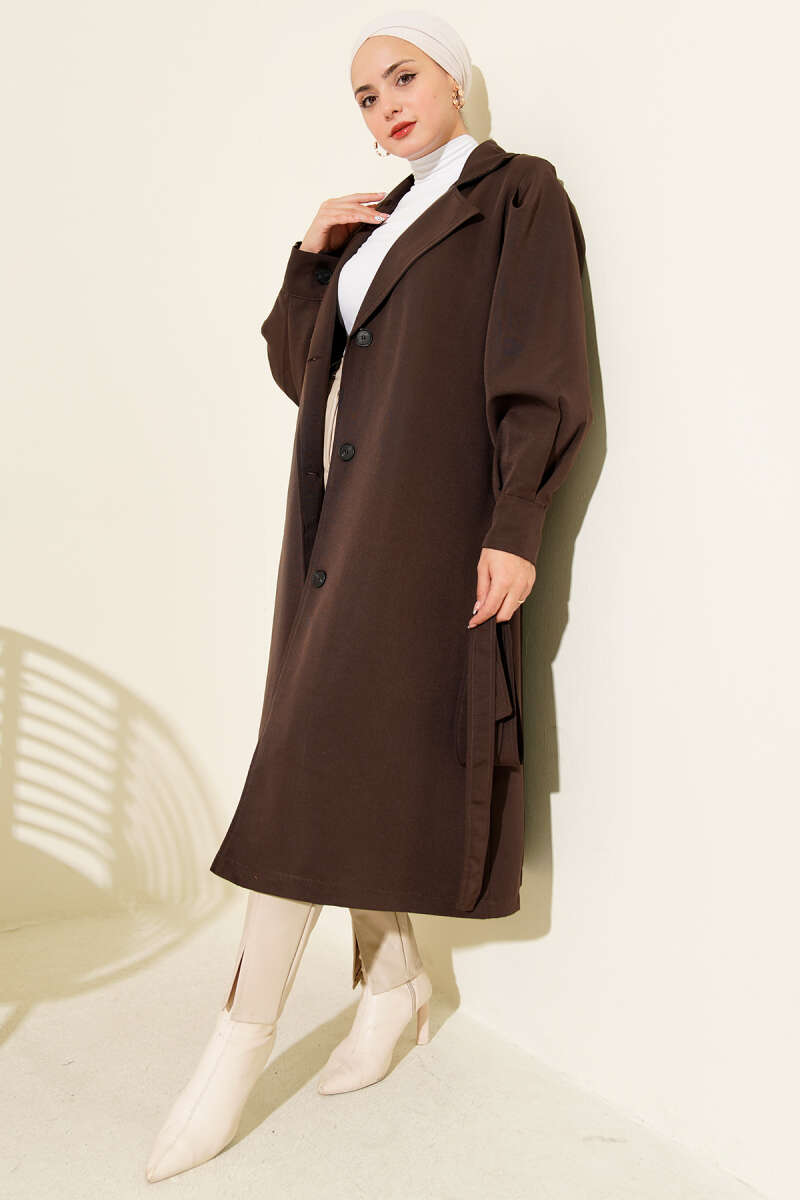 Kol Büzgülü Fermuarlı Trençkot Kahve