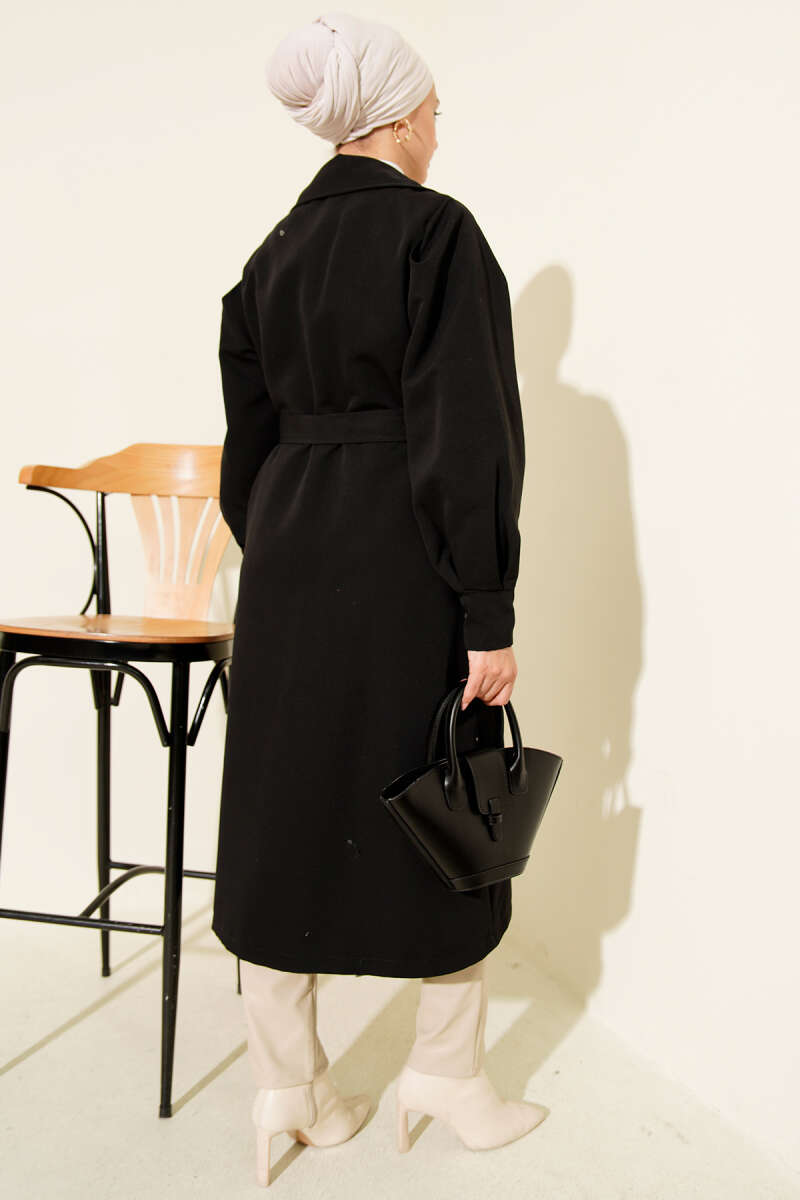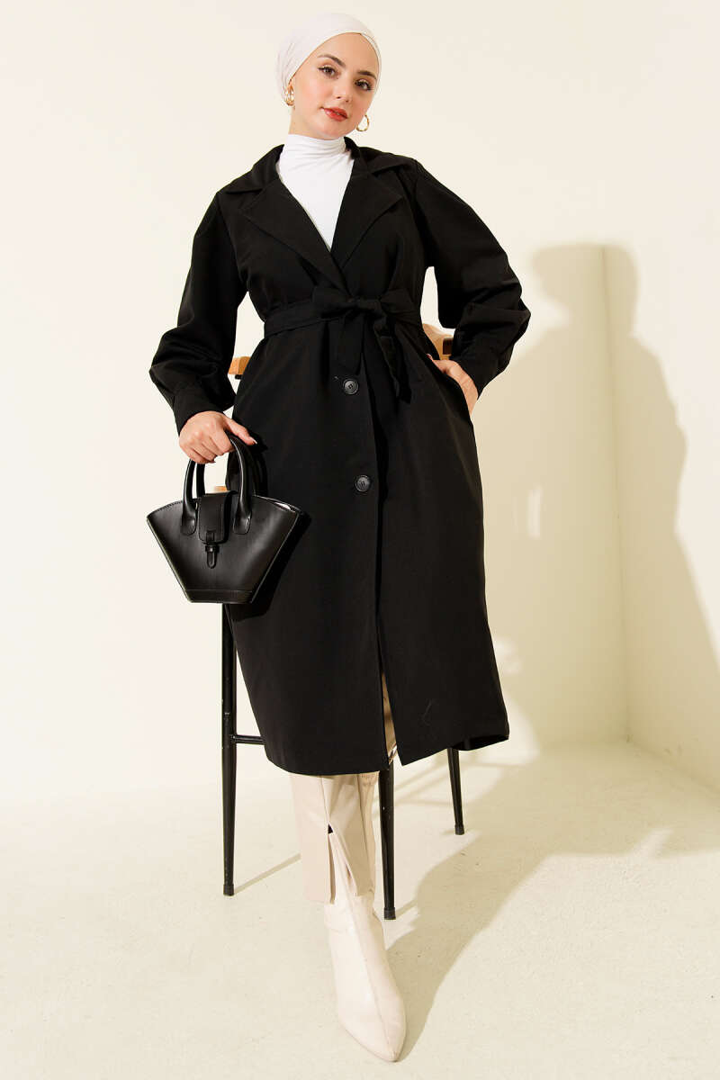 Kruvaze Yaka Kuşak Detaylı Trençkot Kahve