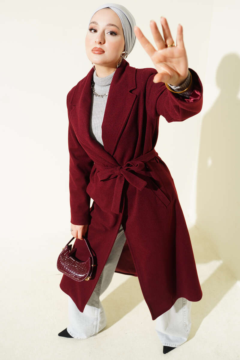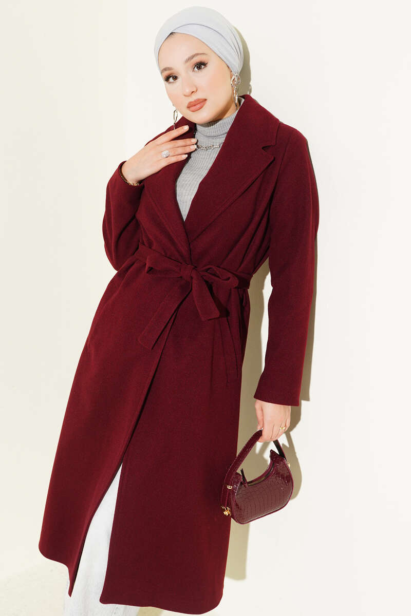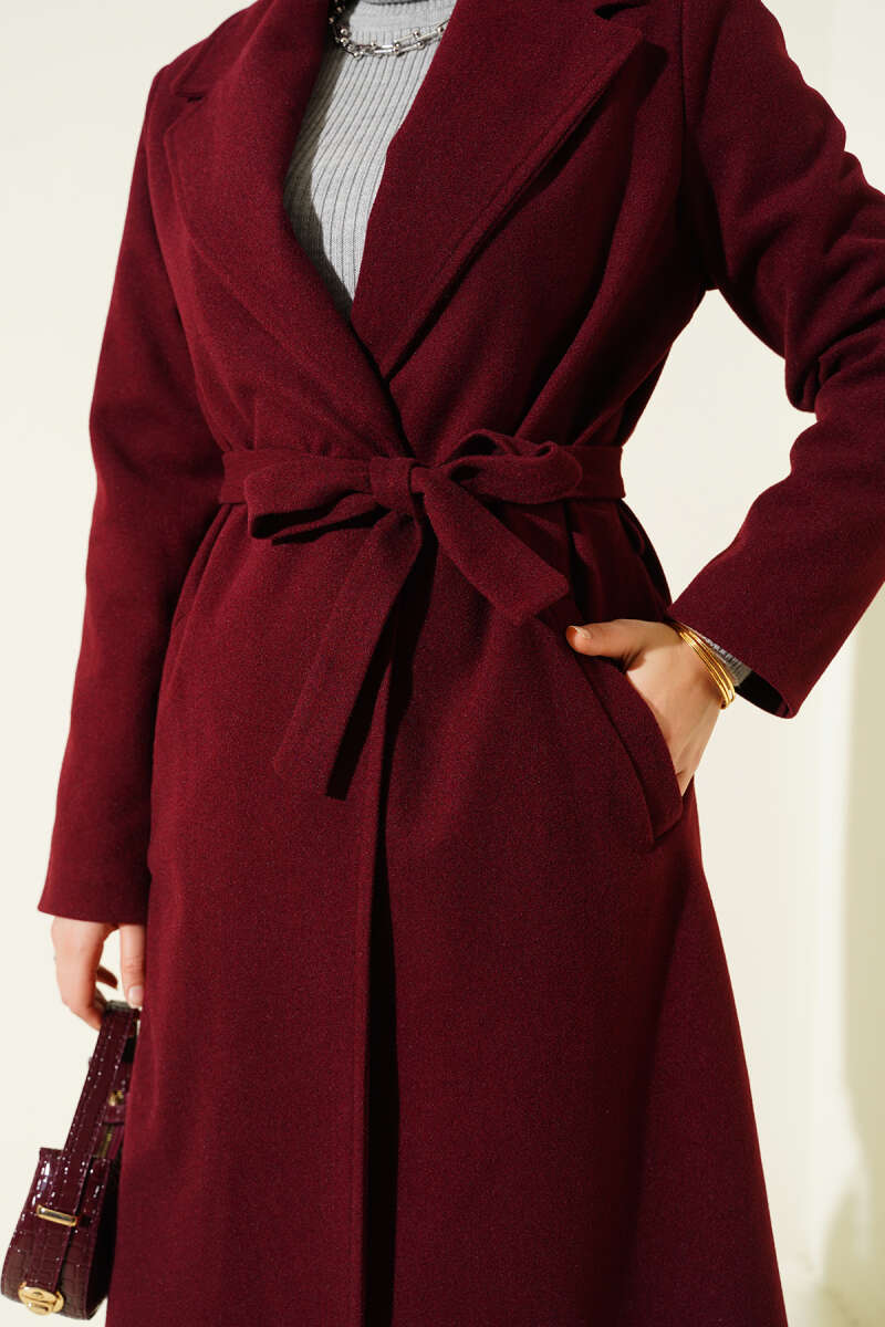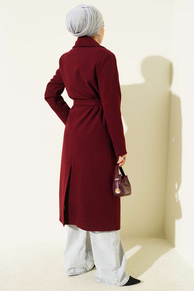 Kruvaze Yaka İki Düğmeli Kaşe Kaban Siyah