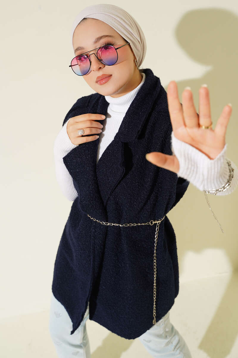 Kruvaze Yaka Düğmeli Detaylı Yelek Lacivert