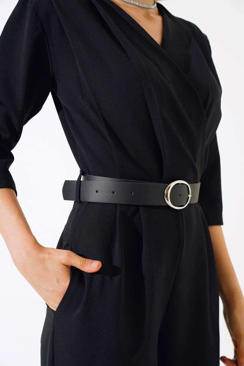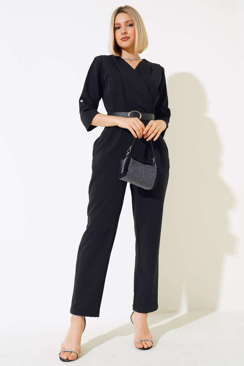 Bisiklet Yaka Sakal Detaylı Kazak Siyah