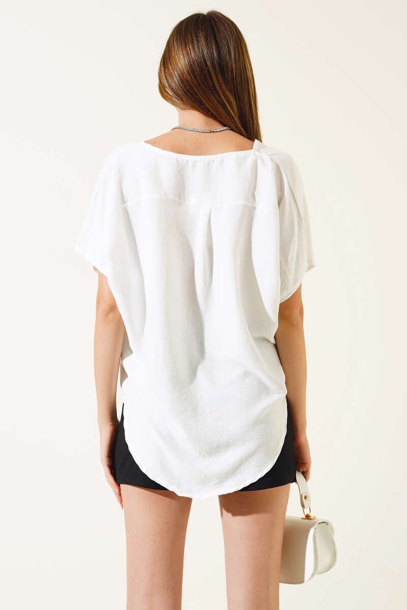 Kruvaze Yaka Salaş Bluz Beyaz