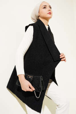 İp Kuşaklı Kaşe Yelek Siyah