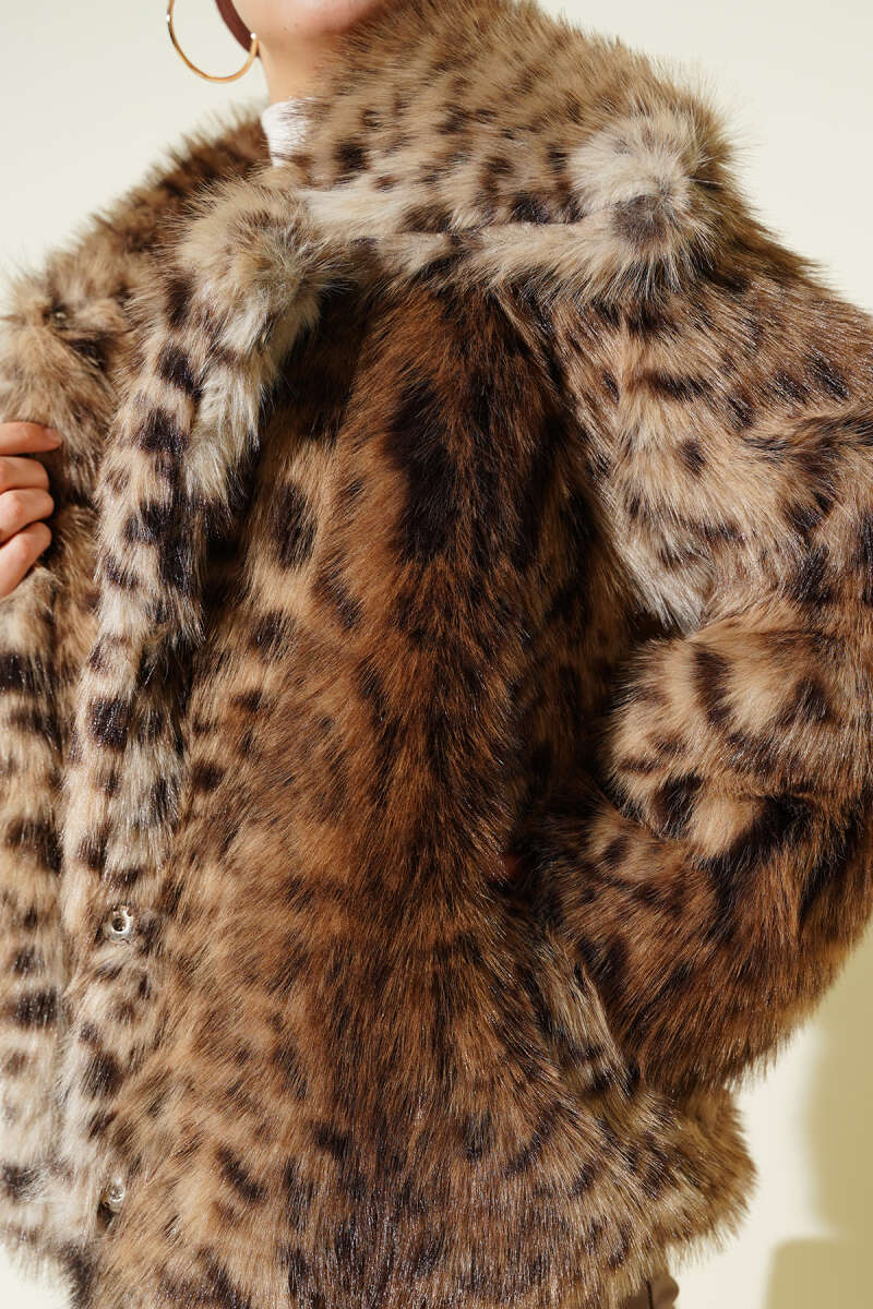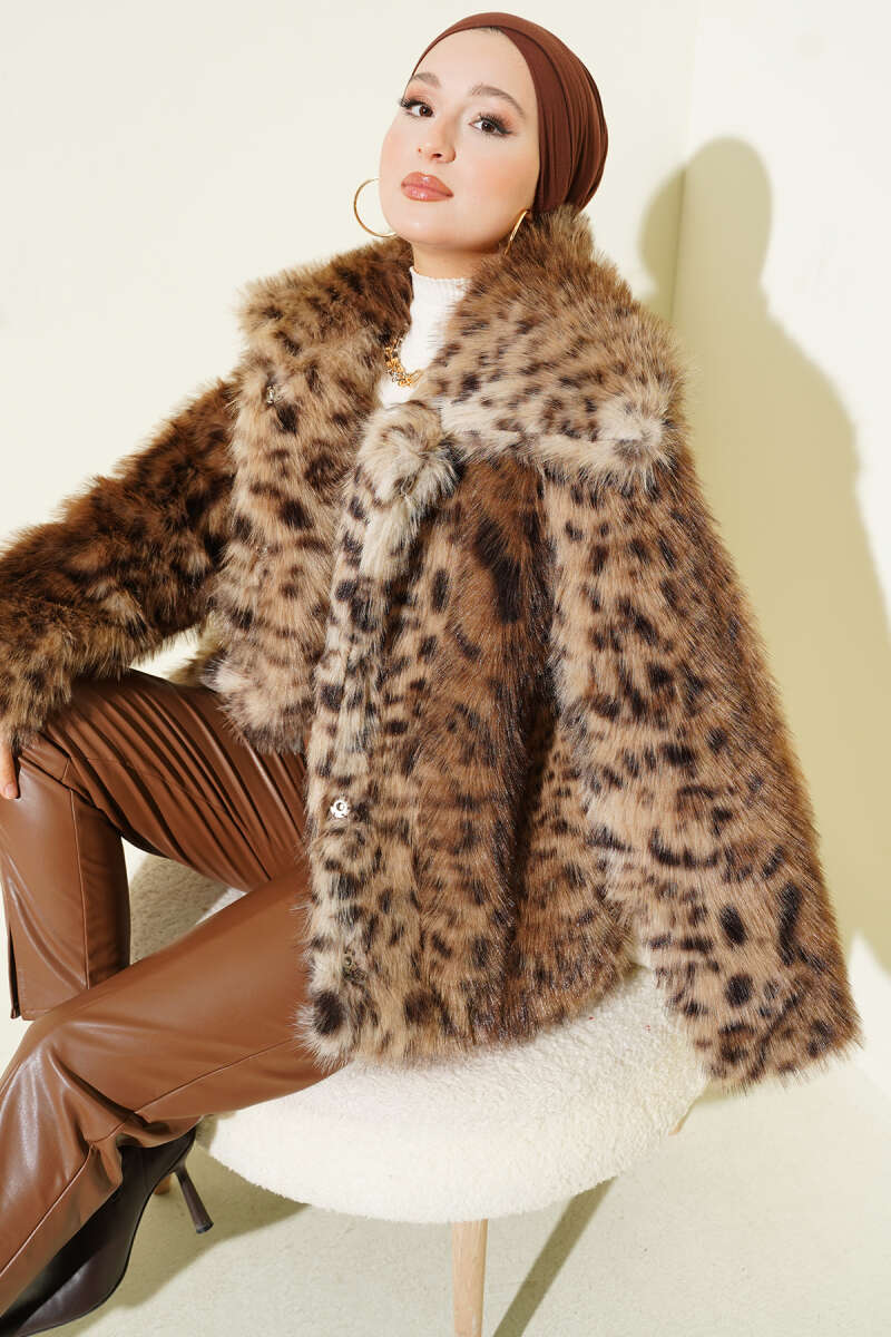 Yakası Kürklü Parlak Mont Krem